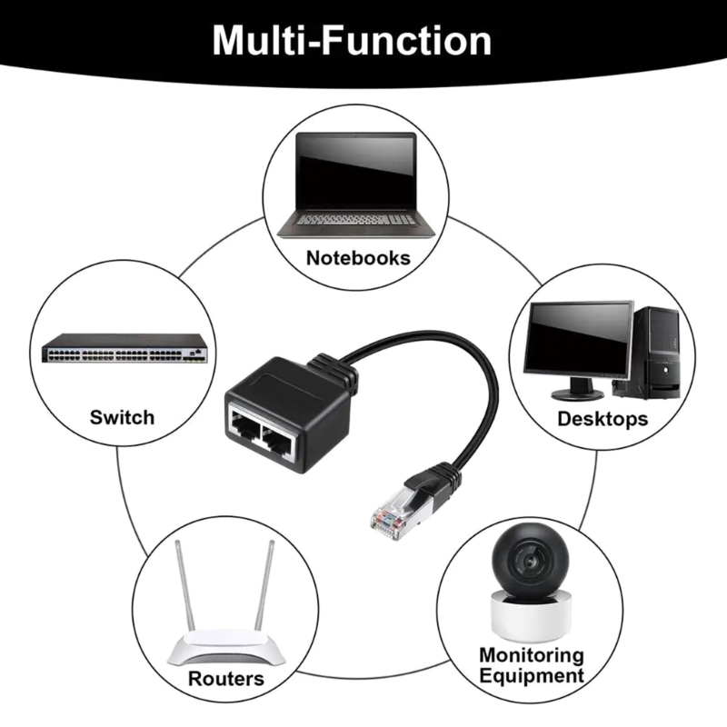 RJ45 수-2 암 커넥터 어댑터 케이블로 1x네트워크 케이블을 2개의 장치에 편리하게 연결하여 네트워크 연결의 유연성과 편의성을 향상시킵니다.