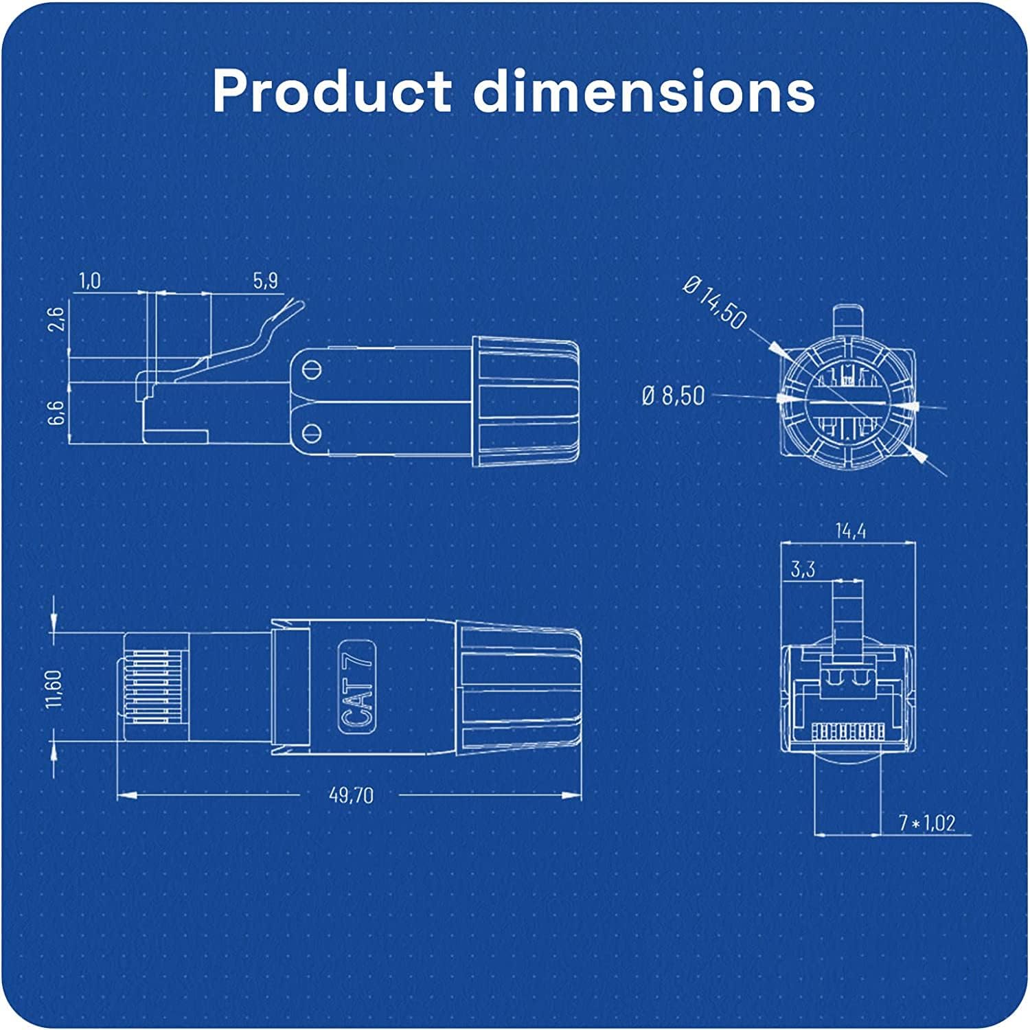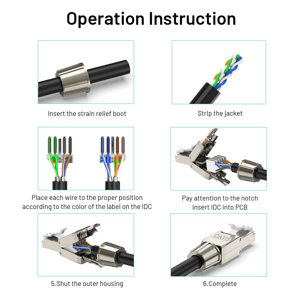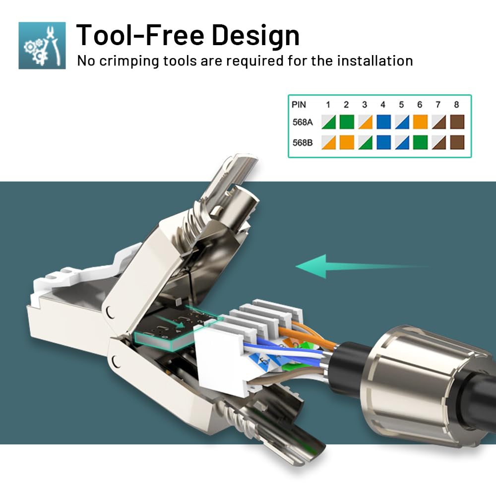 6PCS Cat6A Cat7 Cat8 도구가 필요 없는 현장 종단 플러그, 차폐형(STP), PoE++, TAA 준수, ANSI/TIA 및 ISO/IEC 인증, CE 인증, 모듈형 RJ45 수 커넥터