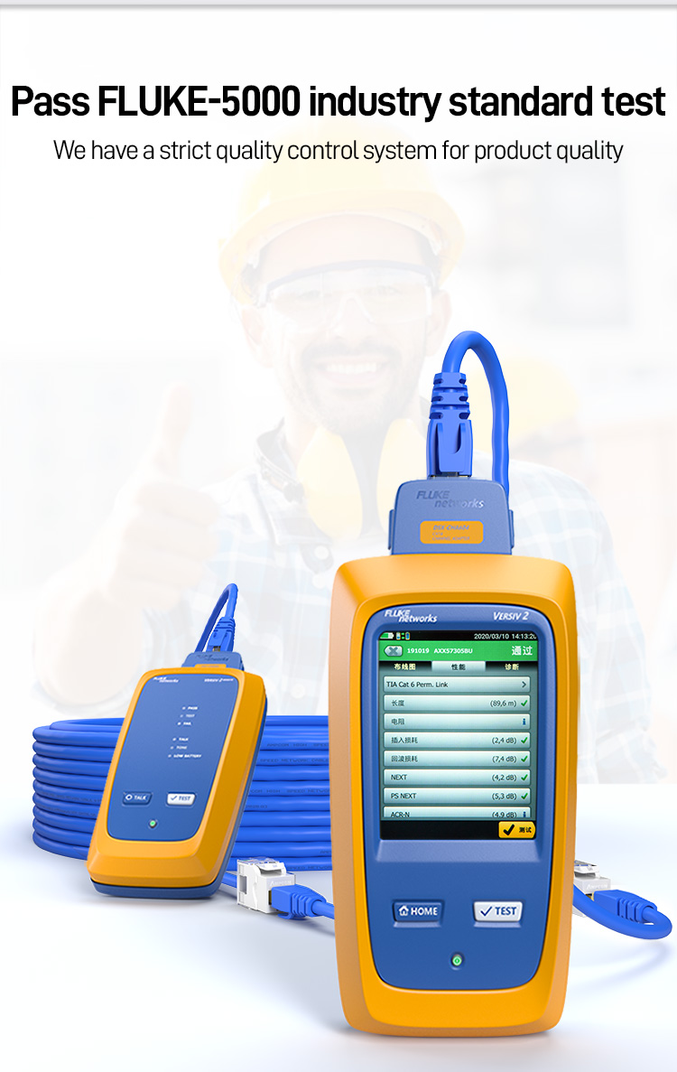 3.FLUKE 테스트: 각 케이블은 Fluke DXT-5000 Versiv 케이블 분석기로 개별적으로 테스트되어 제품 품질 보증과 고객 만족을 보장합니다.