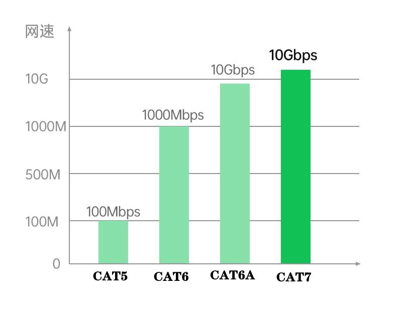 -표준: 고양이 7; TIA/EIA-568-B.2-10 사양 충족, Cat 5e/Cat 6/Cat 6a 이더넷 케이블과 역호환 가능