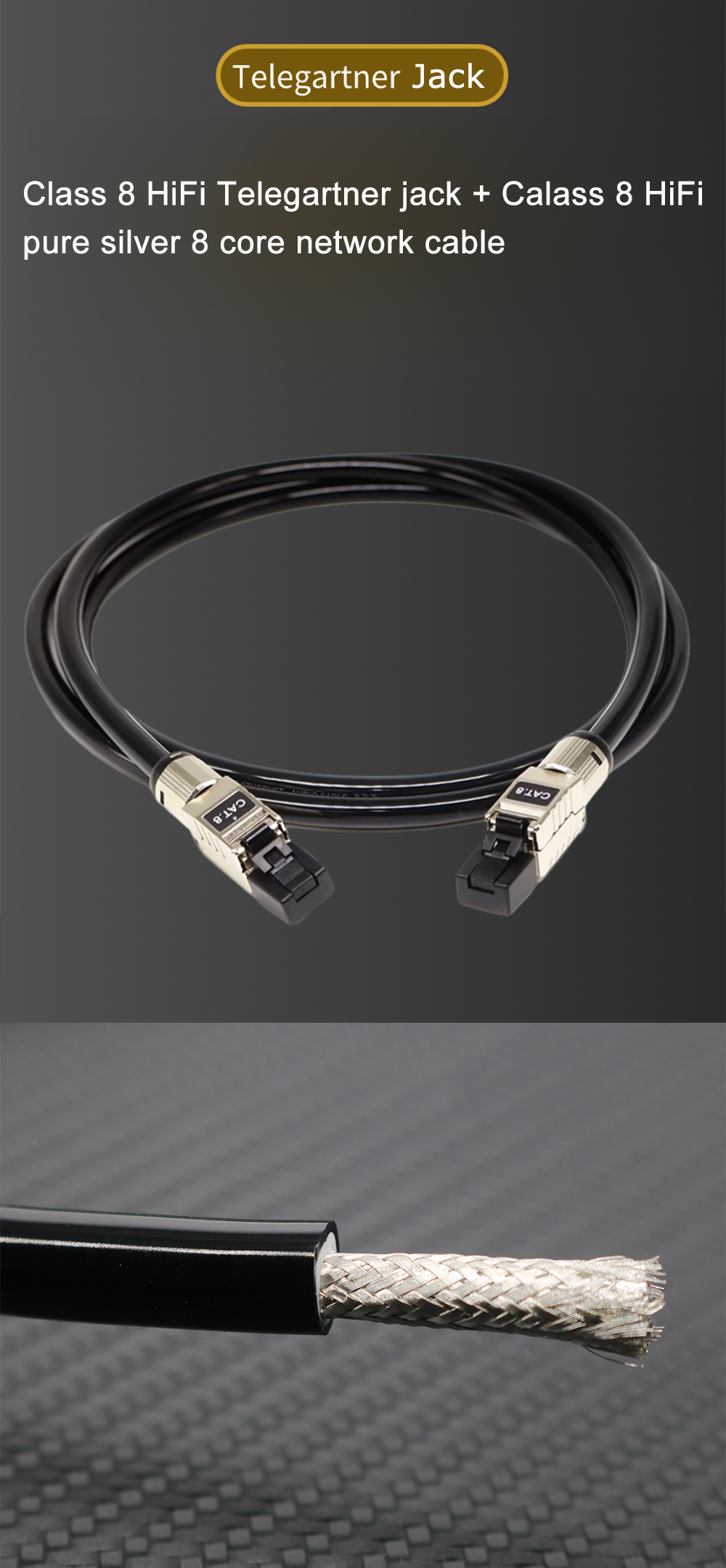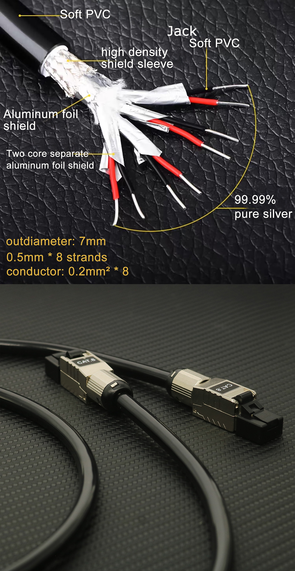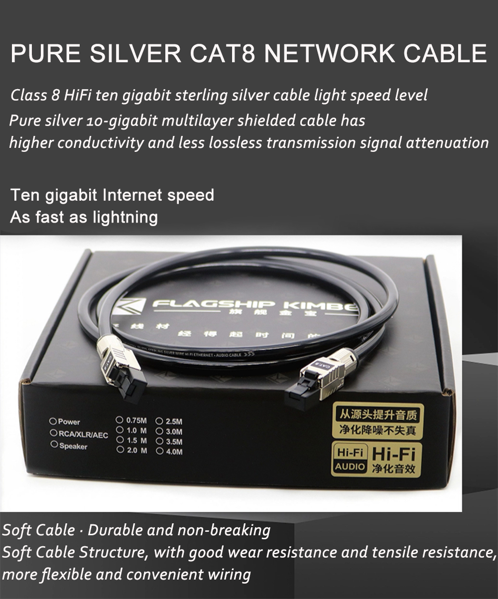 랜케이블 CAT.8 40Gbps RJ45 XSSH 7mm 8 코어 99.999% 5N 실버 15AWG 이중층 편조 포일 실드 네트워크 케이