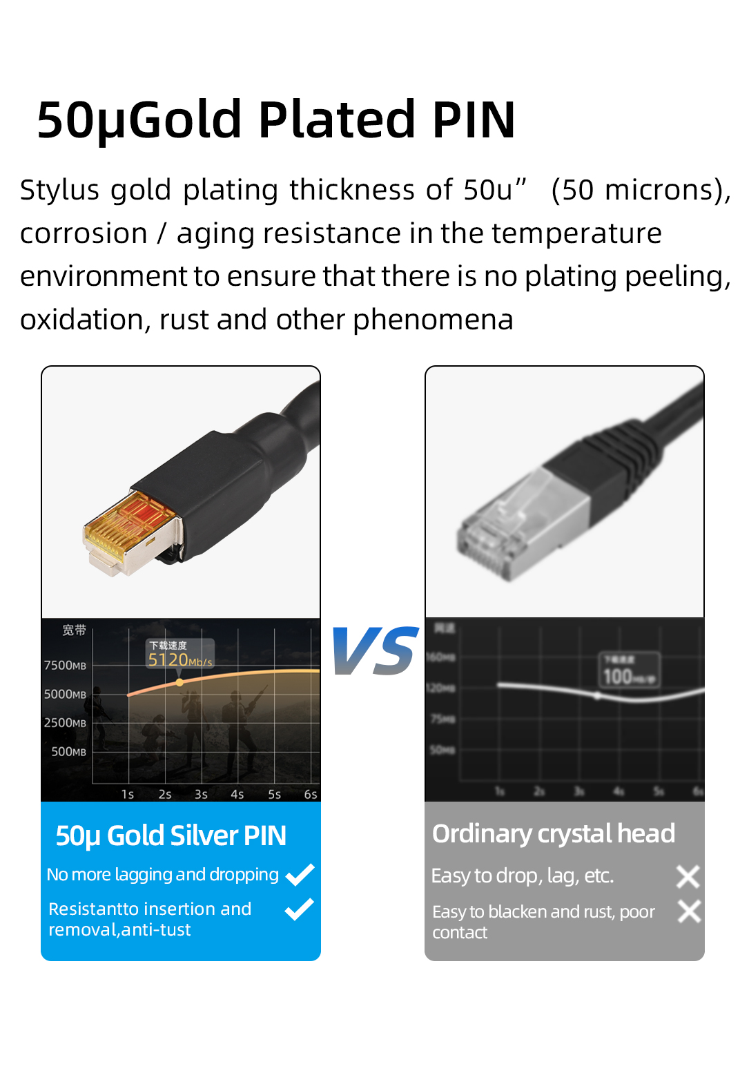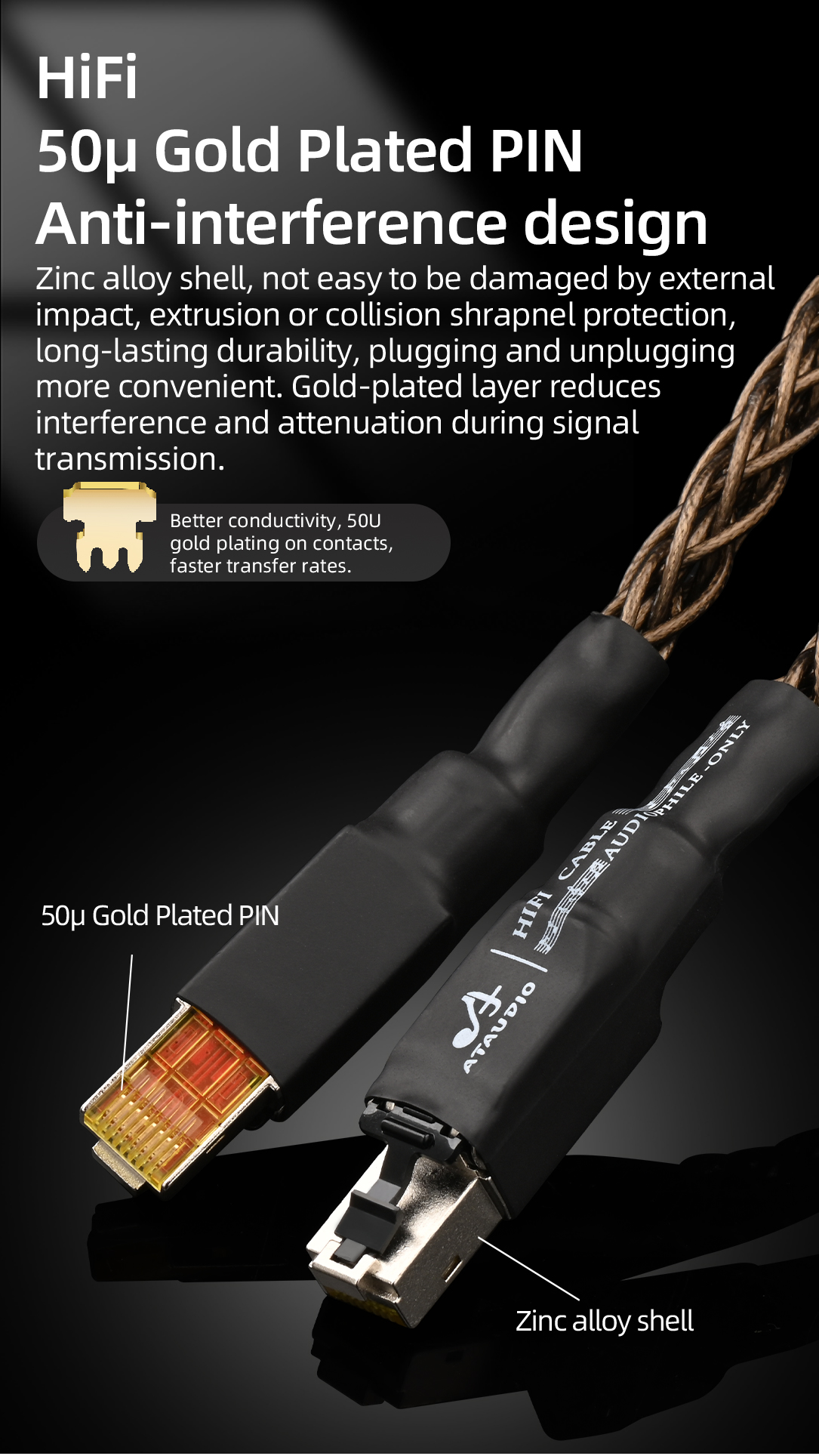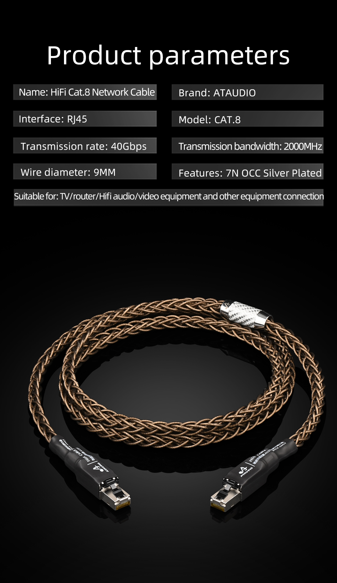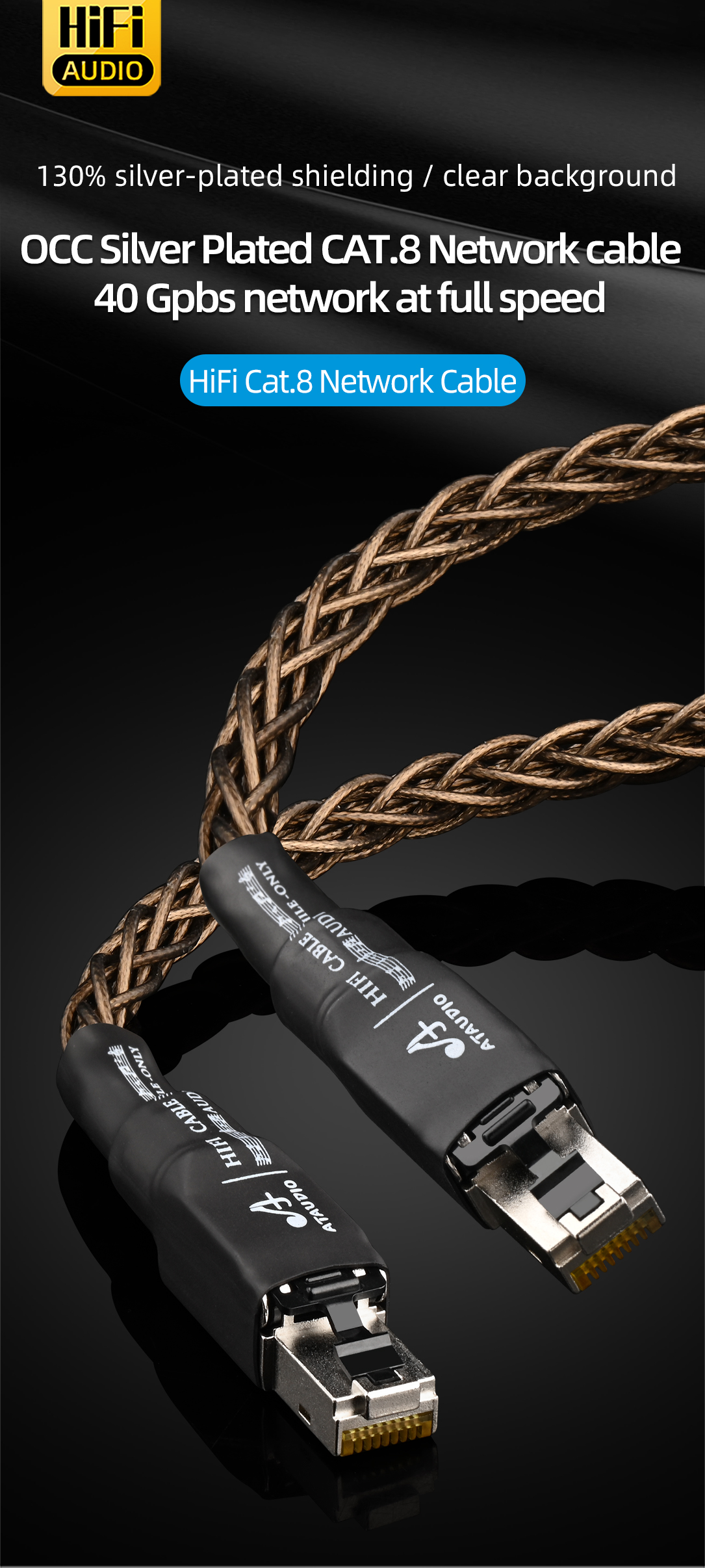 랜케이블 고속 RJ45 네트워크 케이블 7N OCC 실버 도금 HiFi Cat8 이더넷 PC 라우터 용 40Gbps 노트북 인터