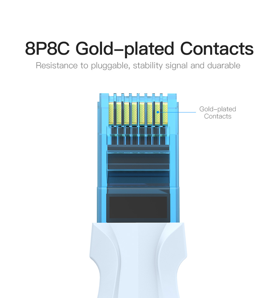 8개의 코어 꼬인 구조, 각 2개의 코어는 외부의 전자기 간섭에 저항하면서 서로 꼬여 있습니다.