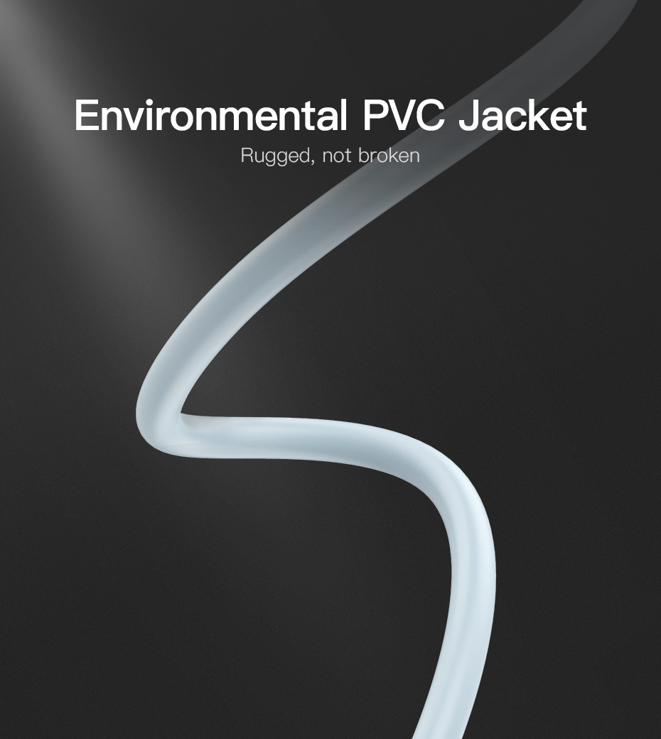 각 코어는 구리 부하와 낮은 알루미늄 밀도를 갖춘 다중 전도성 저저항 .26AWG 굵은 구리 피복 알루미늄 코어로 구성된 7개의 독립적인 코어로 구성됩니다.
