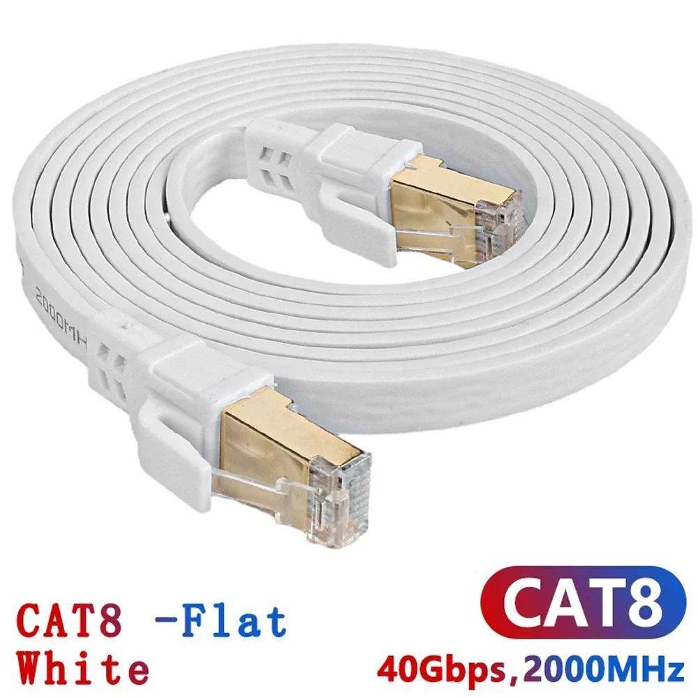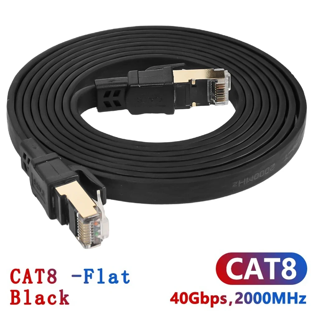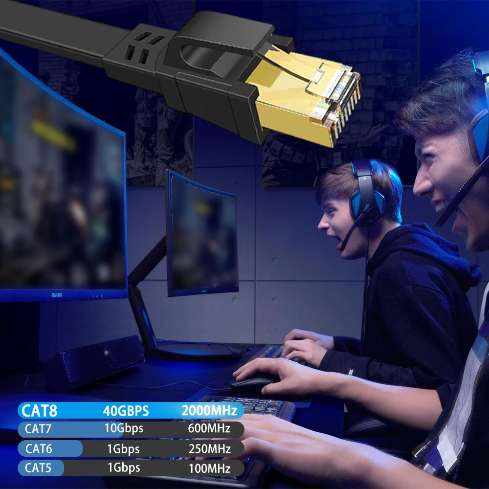 랜케이블 Cat8 이더넷 케이블 헤비 듀티 고속 Cat 8 LAN 네트워크 40Gbps 2000MHz RJ45 플랫 인터넷 컴퓨터