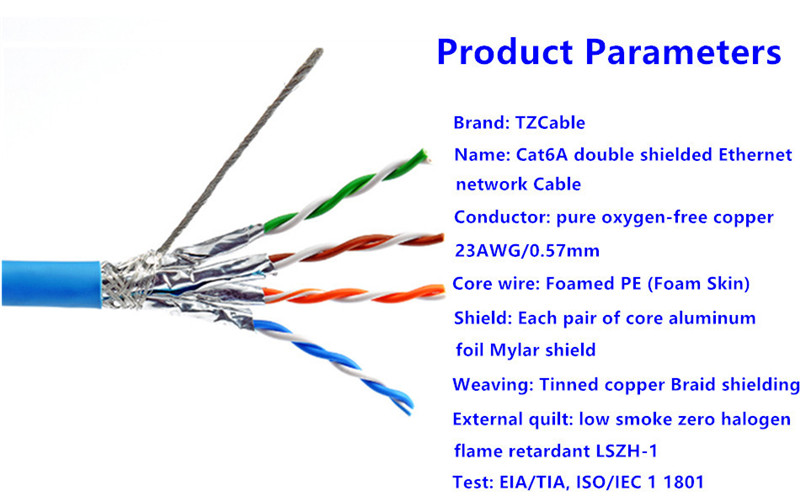 제품 이름:RJ45 CAT6A 이더넷 케이블 10G SFTP 이중 차폐 설치 와이어 23AWG YS-279