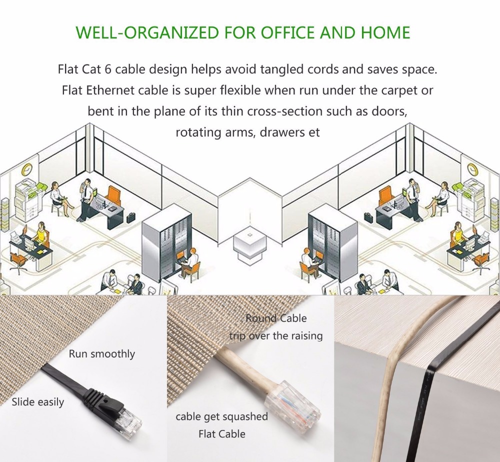 평평하고 숨기기 쉽습니다. 이 플랫 케이블은 카펫 아래, 벽 위, 심지어 뒤에도 완벽하게 맞습니다.