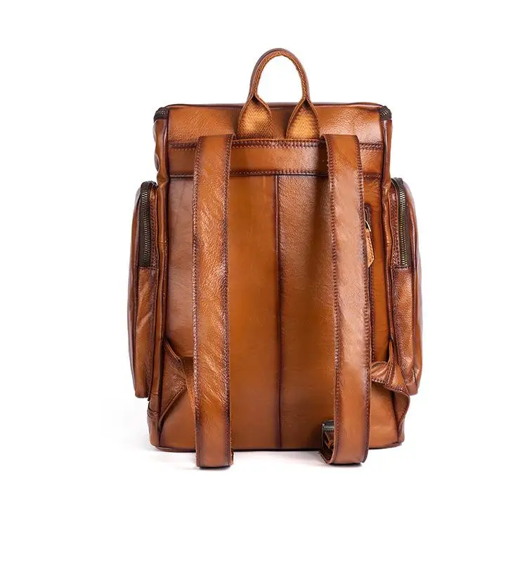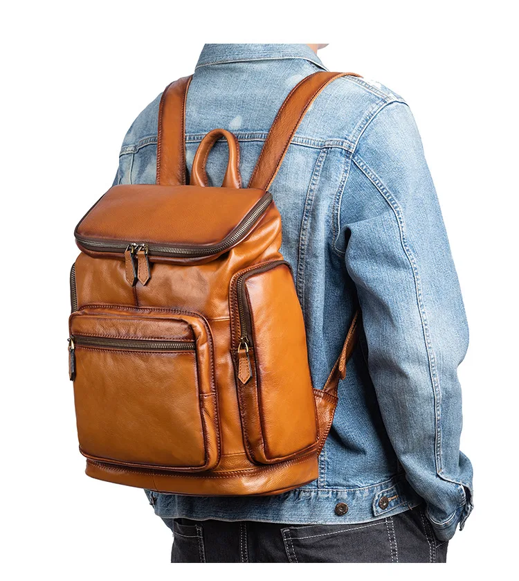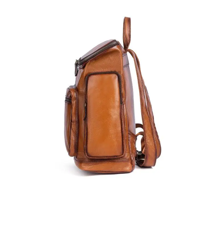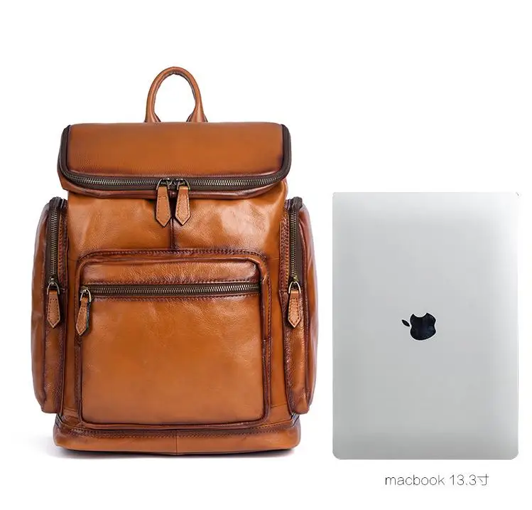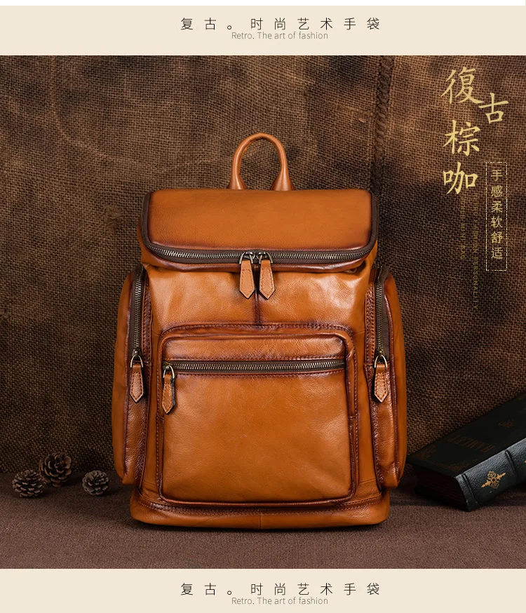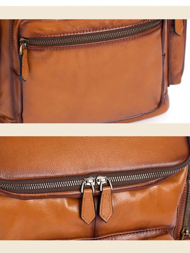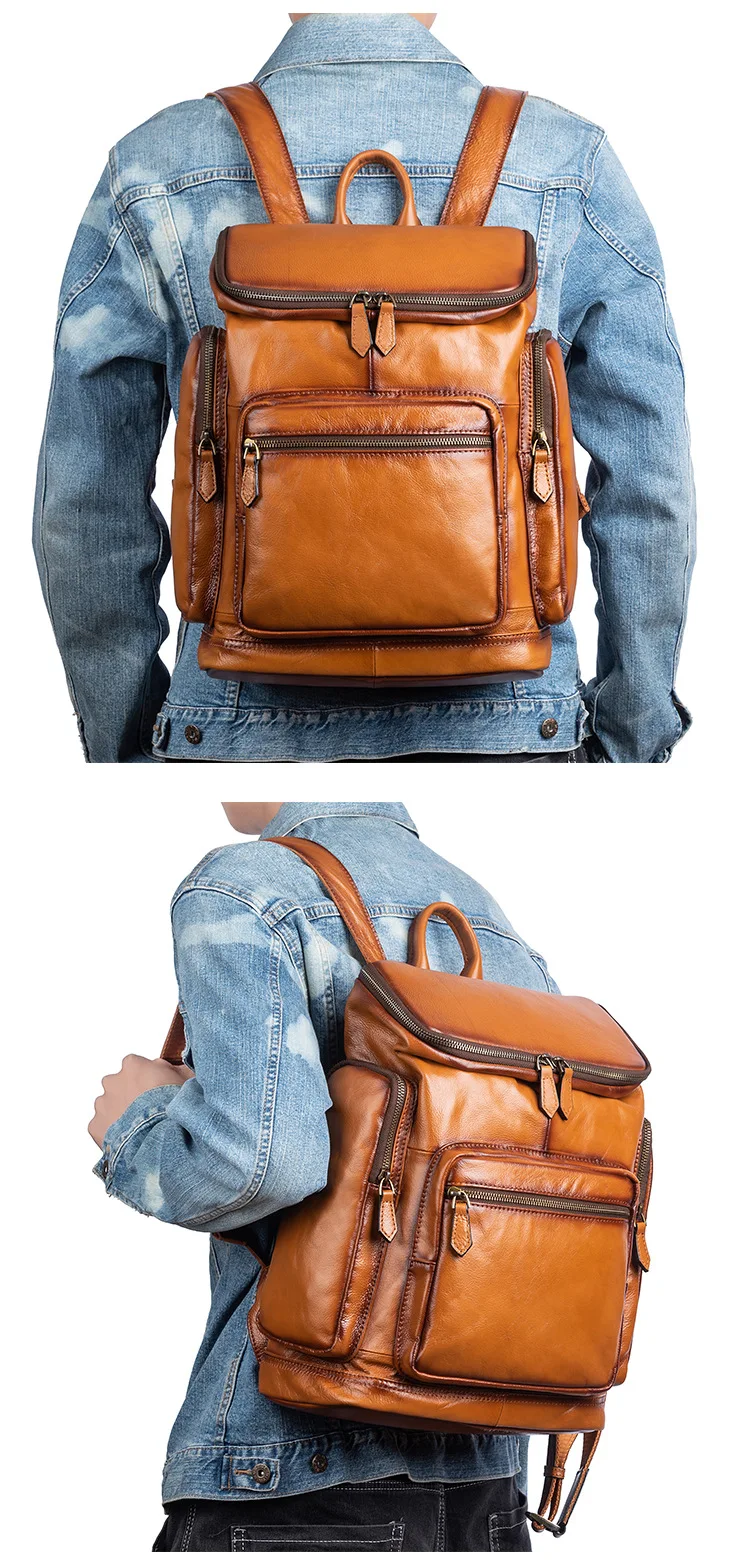 OYIXINGER 남성용 빈티지 가죽 노트북 가방 다목적 소가죽 배낭 대용량 캐주얼 단색 여행
