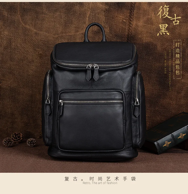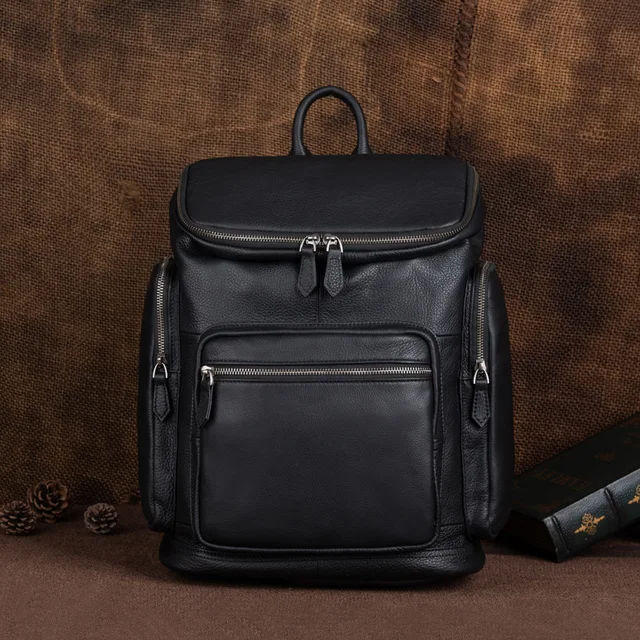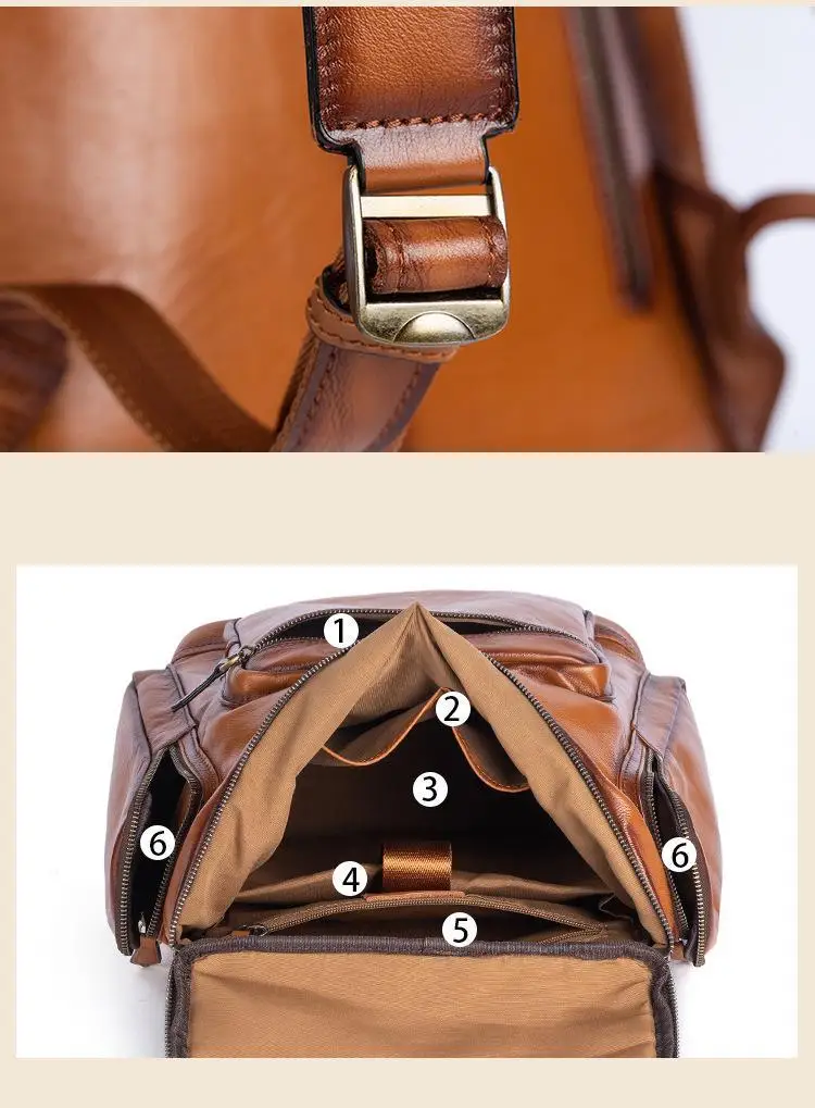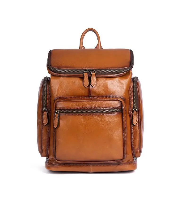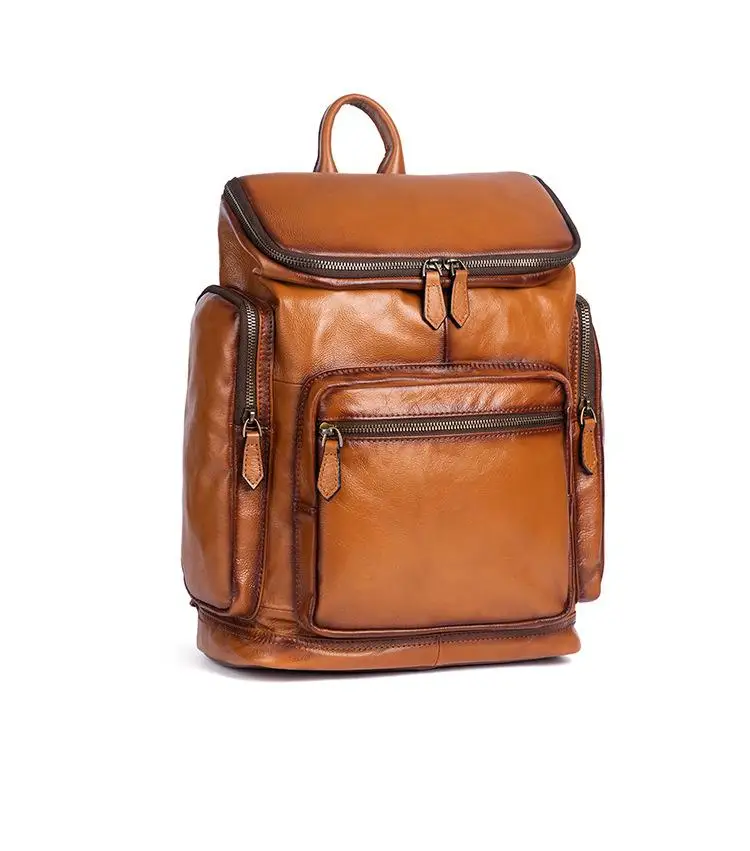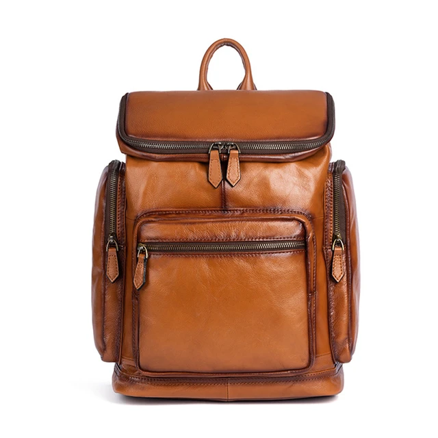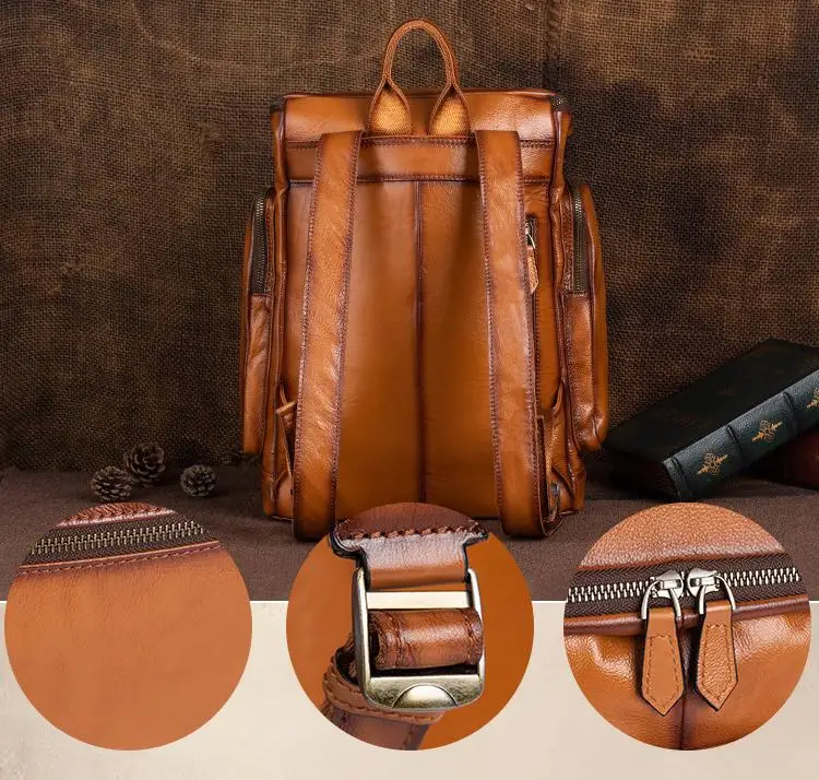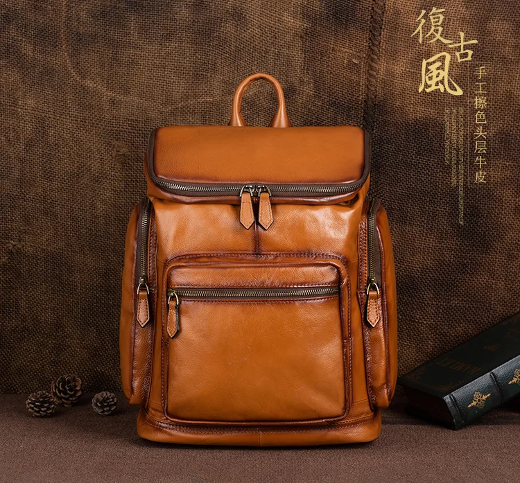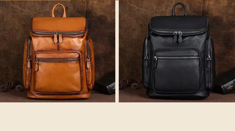 OYIXINGER 남성용 빈티지 가죽 노트북 가방 다목적 소가죽 배낭 대용량 캐주얼 단색 여행