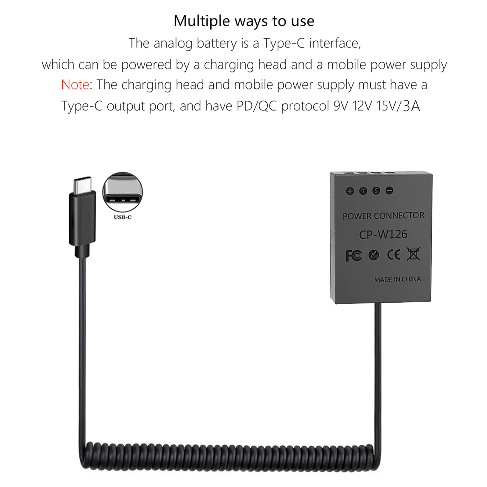PD USB C 어댑터 NP W126 W126S NP W126S 더미 배터리 전원 어댑터 커플러 후지필름 X T3 XT2 XT30 XS10 XT