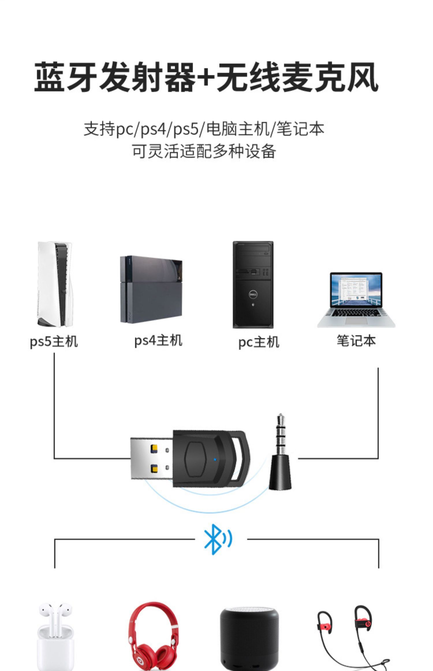 송신기 AUX 무선 수신기 외부 무선이어폰 어댑터 무선이어 5 헤드폰