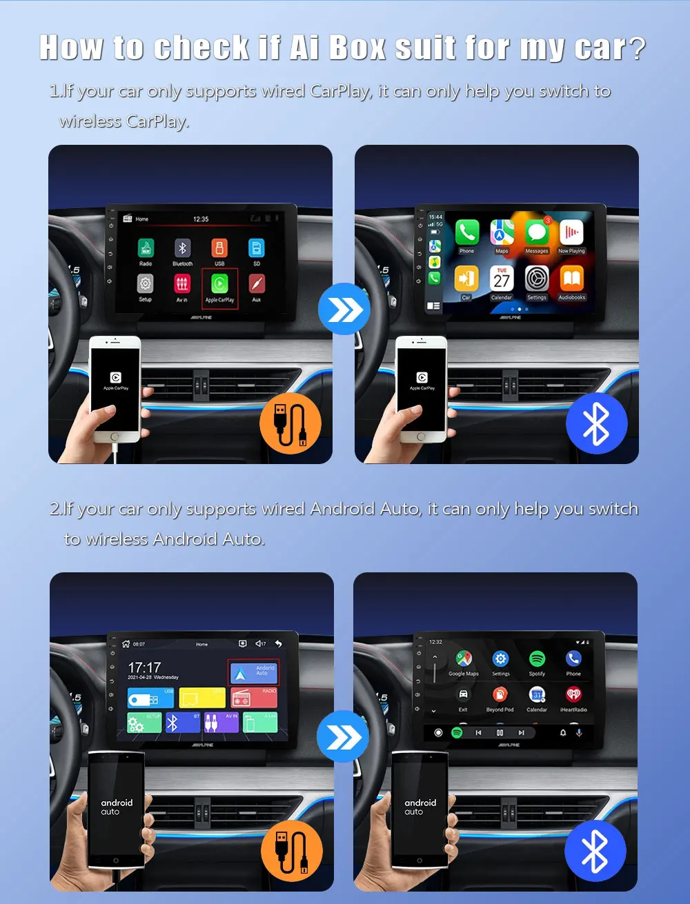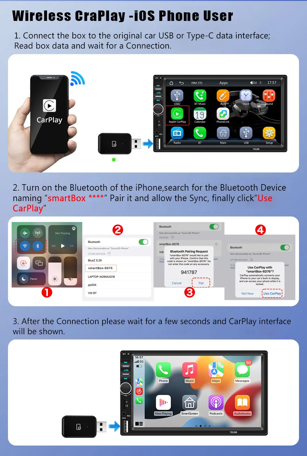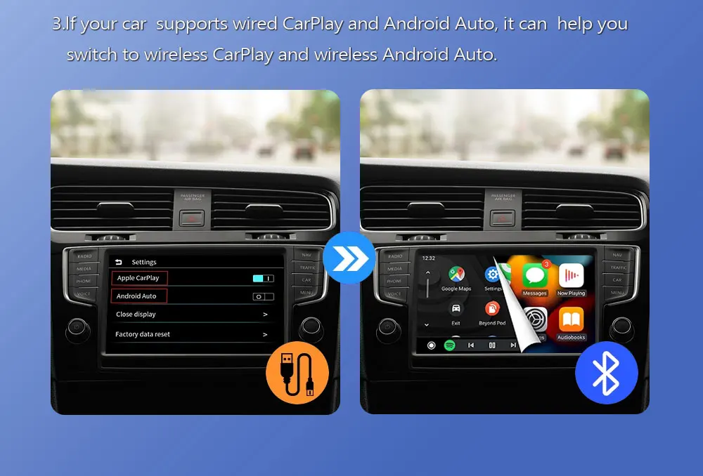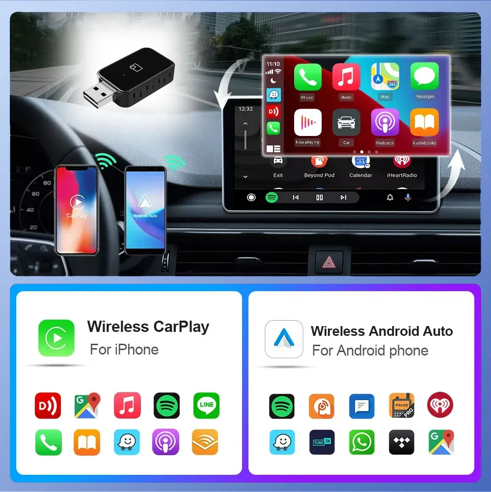 미니 무선 카플레이 안드로이드 자동 무선 어댑터 스마트 2 인 1 박스 푸조 208 308 408 508 2008 3008 40