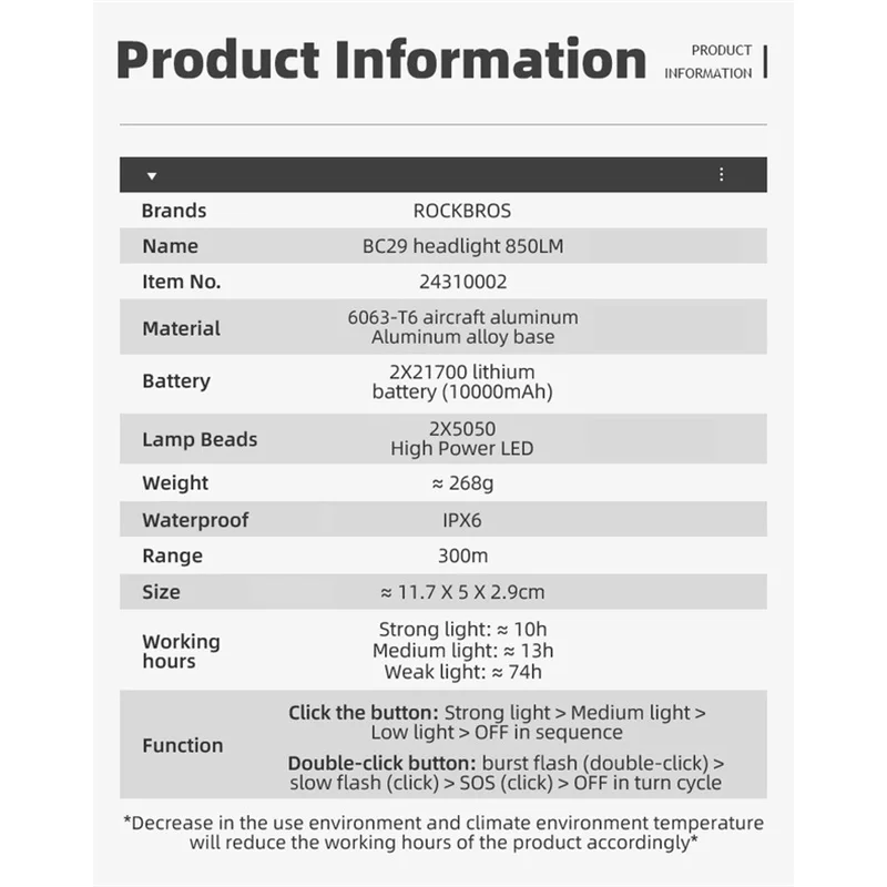 5. 간편한 설치: 조명을 핸들 바 또는 헬멧에 쉽게 장착하여 사용자에게 유연성과 편의성을 제공합니다.