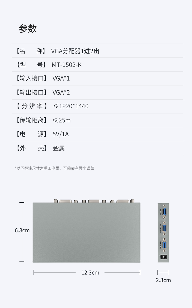 색상 분류 : 1 VGA 디스펜서 1점 2 (150MHz) ![]() | 색상 분류 : 2 VGA 디스펜서 1분2(150MHz) + 오리지널 1.5m VGA 라인 1개 ![]() | 색상 분류 : 3 VGA 디스펜서 1분2(150MHz) + 오리지널 1.5m VGA 라인 2개 ![]() |