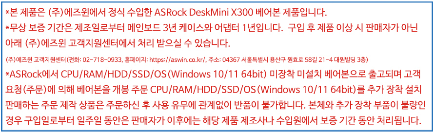 ASRock DeskMini X300 120W 에즈윈 미니 베어본 PC