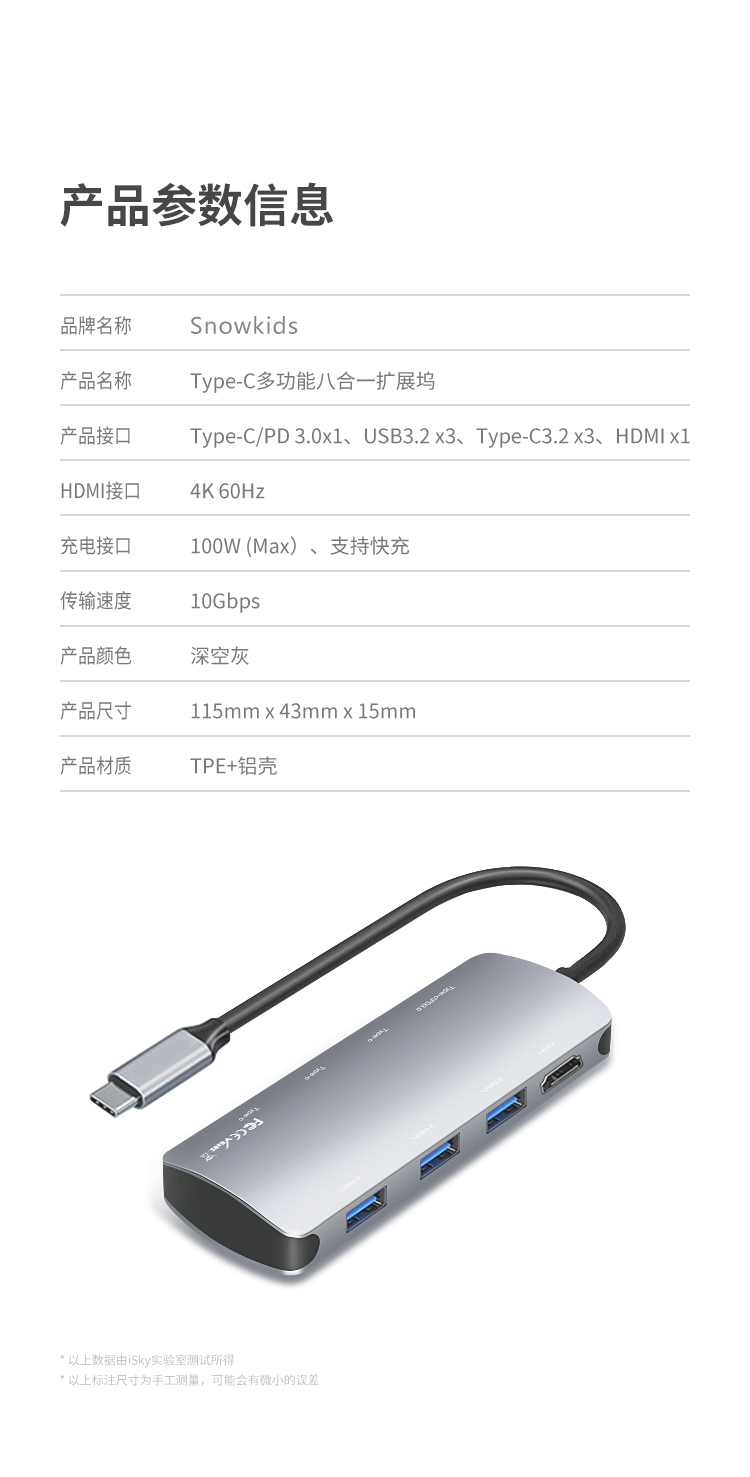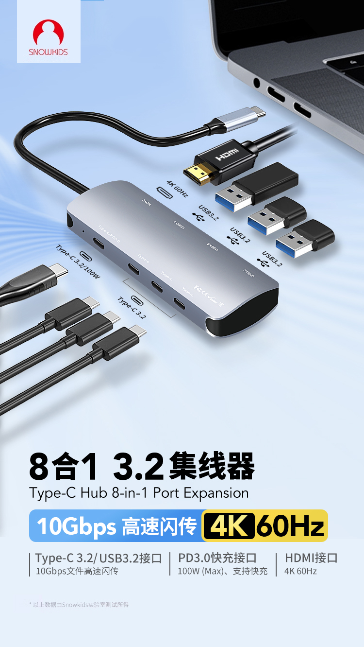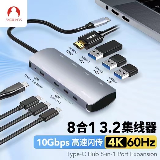 색상 분류 : 5 10G 고속 전송 8 in 1 3 USB3 2 3 Type C 3 2 HD Type C/PD100W ![]() | 색상 분류 : 6 1미터 선 길이 USB3 2 포트 10기가 고속 전송 5 in 1 4 USB3 2 Type C/전원 공급 ![]() |