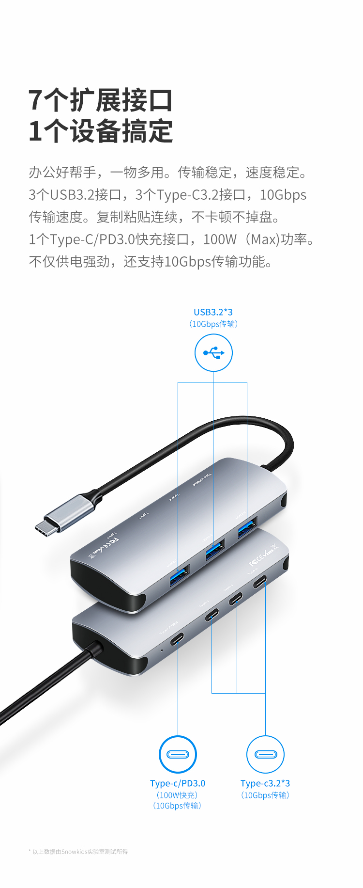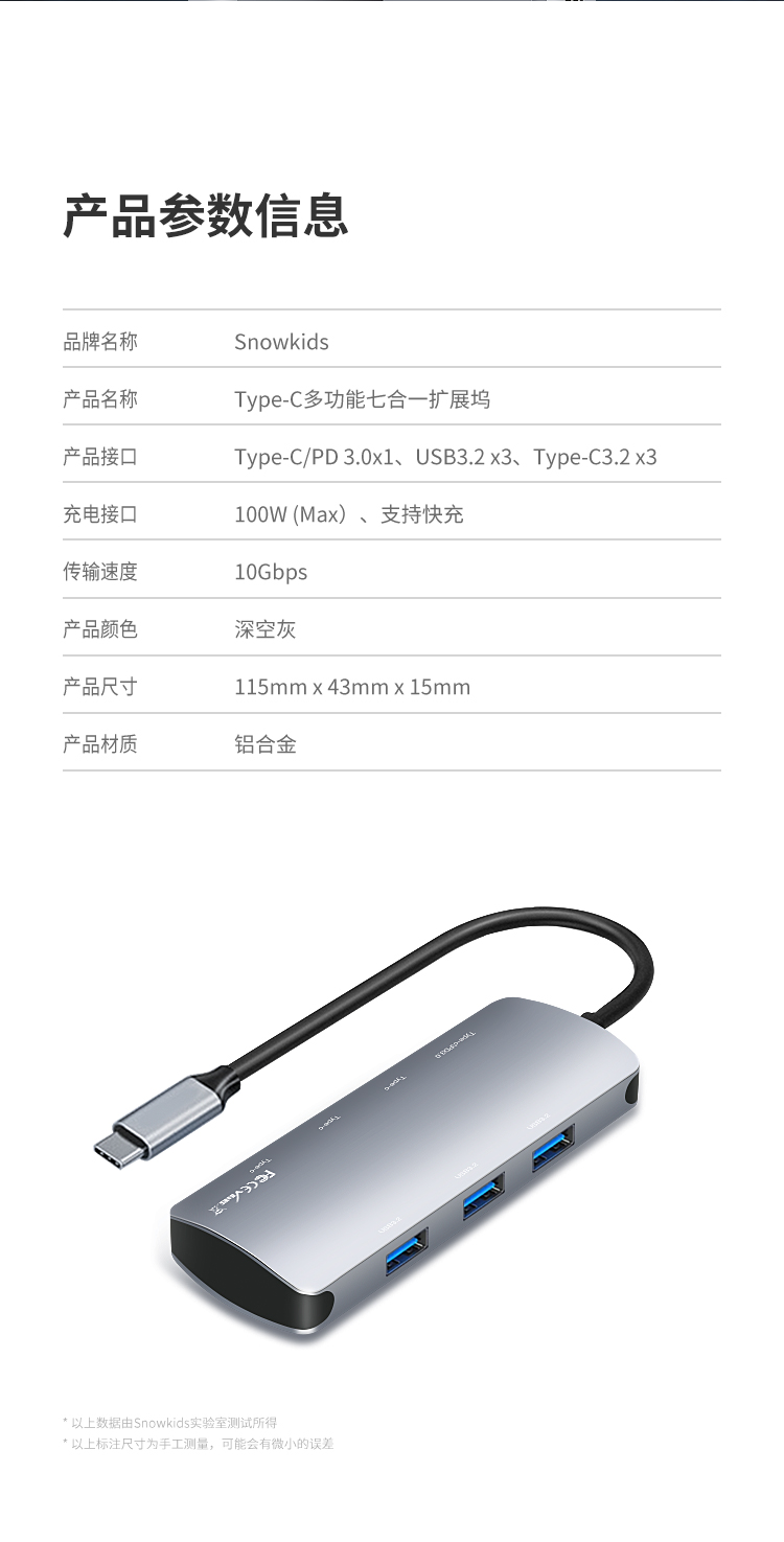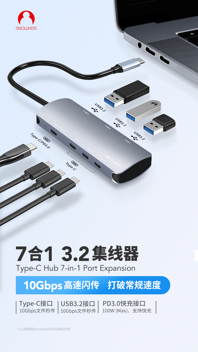 색상 분류 : 3 10G 고속 전송 5 in 1 2 USB3 2 2 Type C 3 2 3 5mm 이어폰 단자 ![]() | 색상 분류 : 4 10G 고속 전송 7 in 1 3 USB3 2 3 Type C3 2 Type C/PD3 2 ![]() |