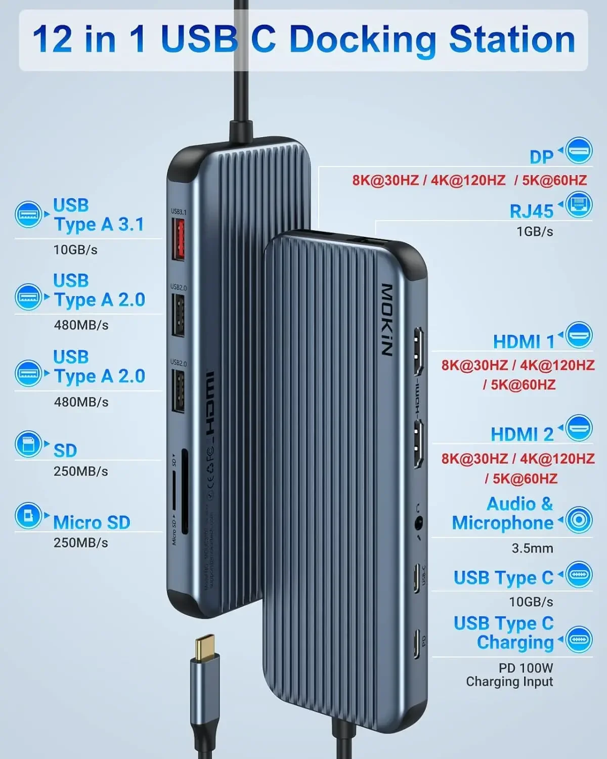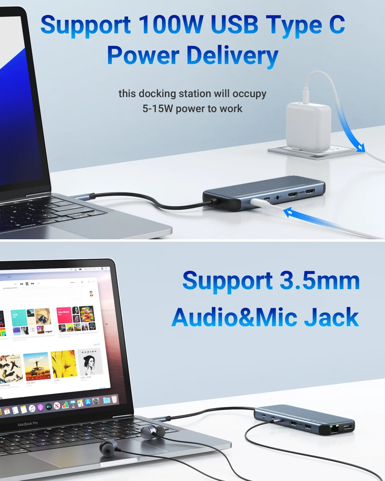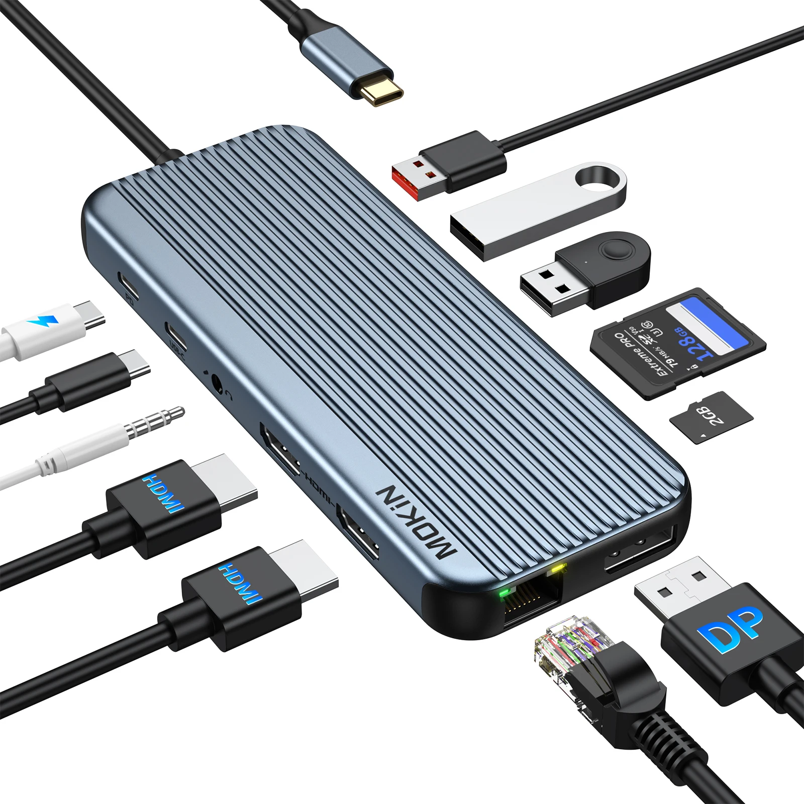 USB 허브 도킹 스테이션 USB C 듀얼 8K HDMI DP USB 3 1 RJ45 SD/TF 오디오 PD 100W 허브 어댑터 프로/에