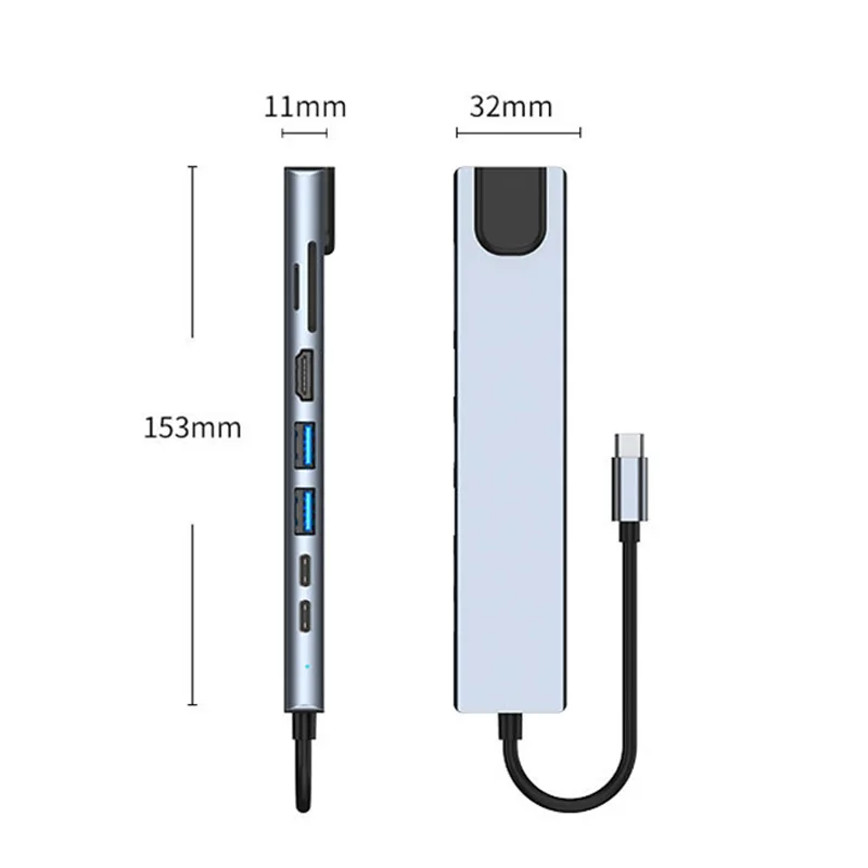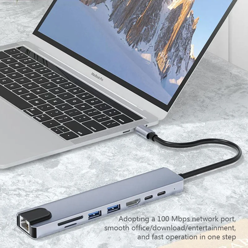USB 타입 C 허브 어댑터 SD Tf Rj45 카드 리더기 노트북 컴퓨터용 Pd 고속 충전 8 in 1 3 1 4k HDTV