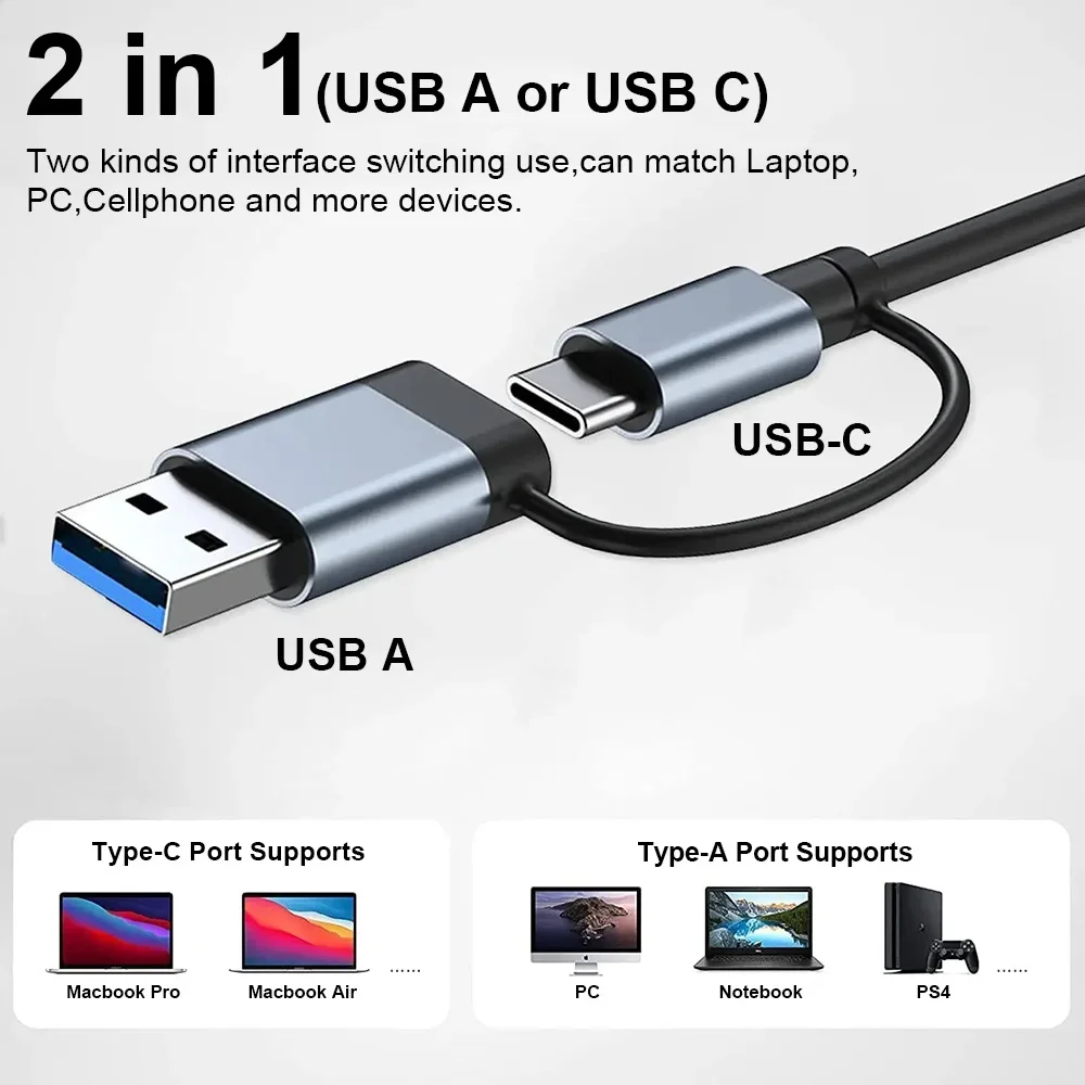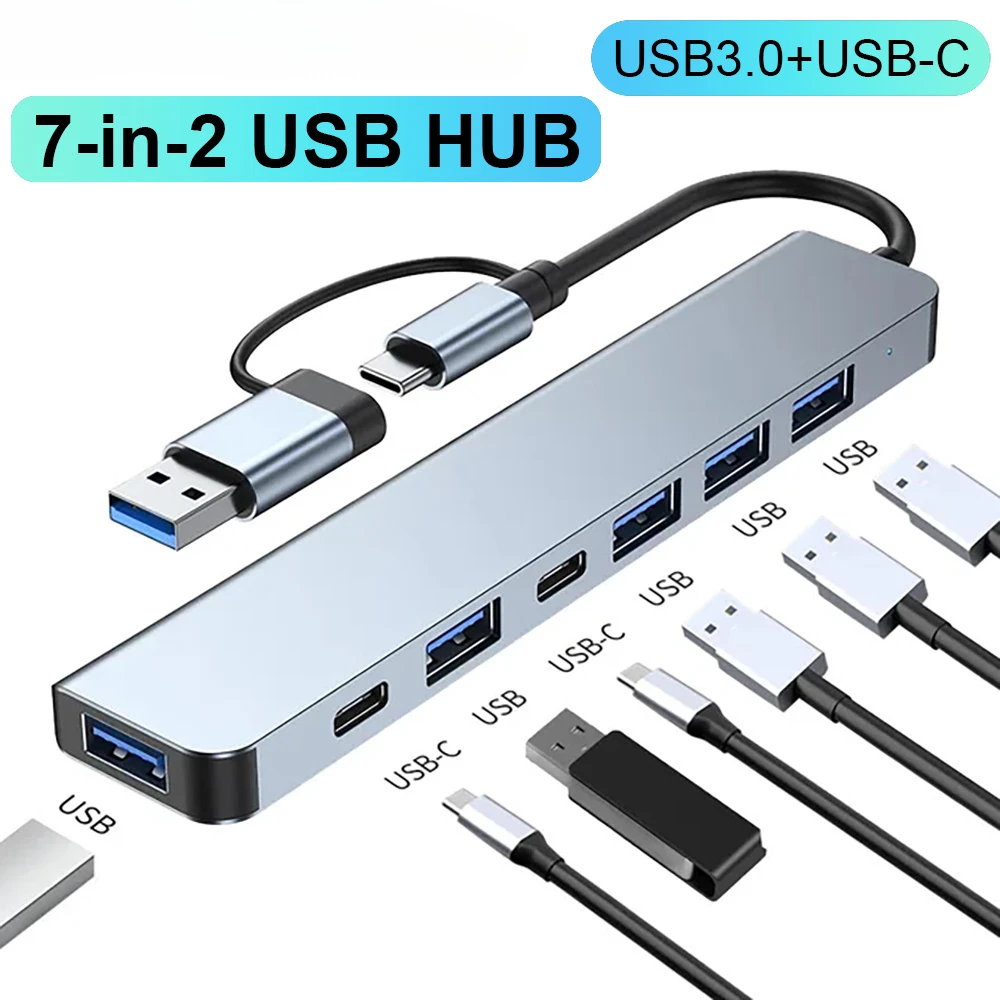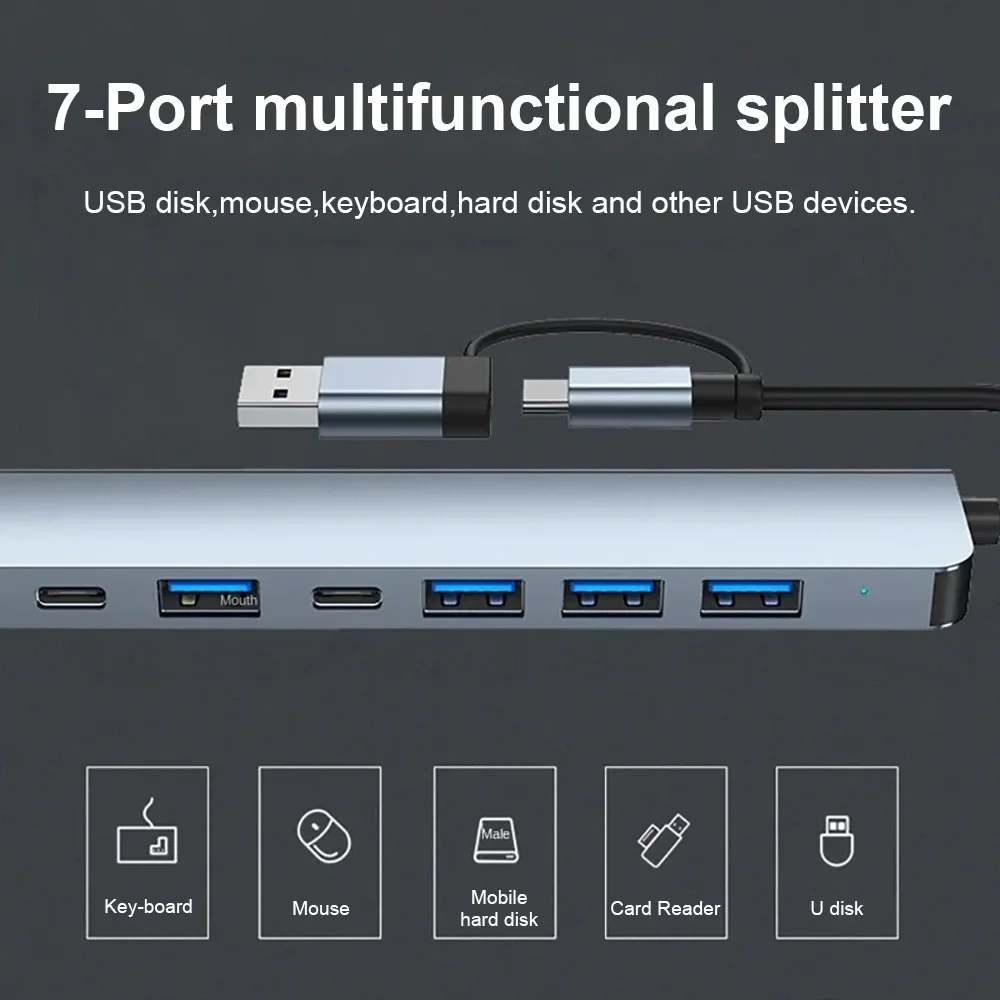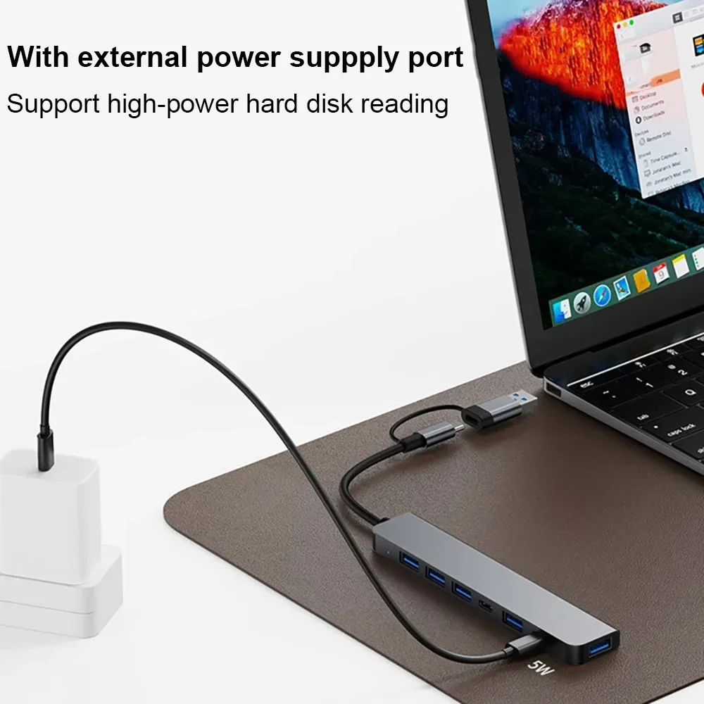 4/7 포트 USB C타입 확장기 USB 3 0 고속 변속기 멀티 포트 USB 분배기 노트북 및 데스크탑에 2 in