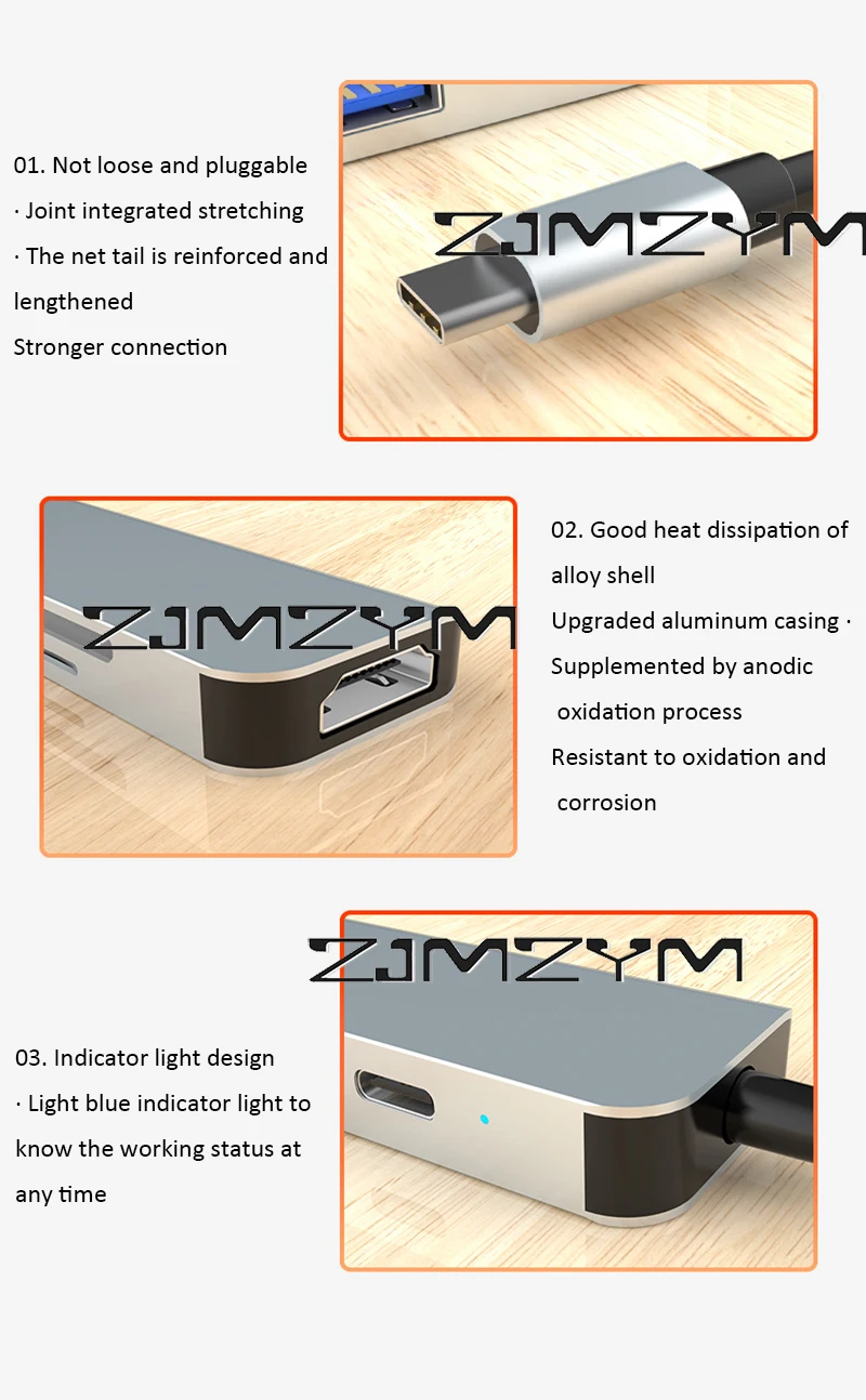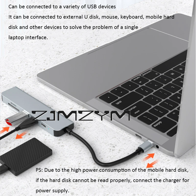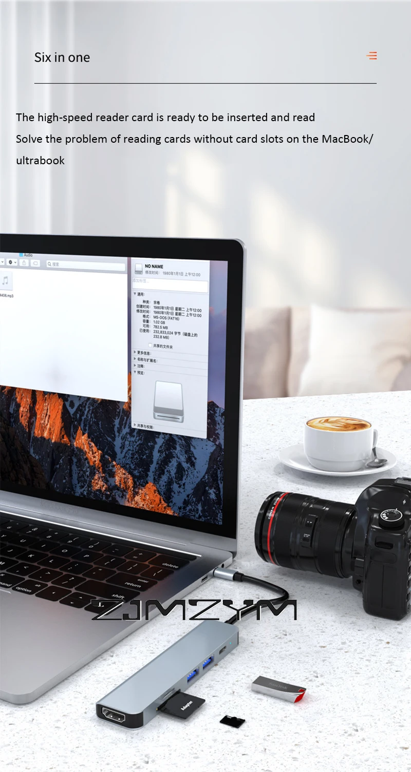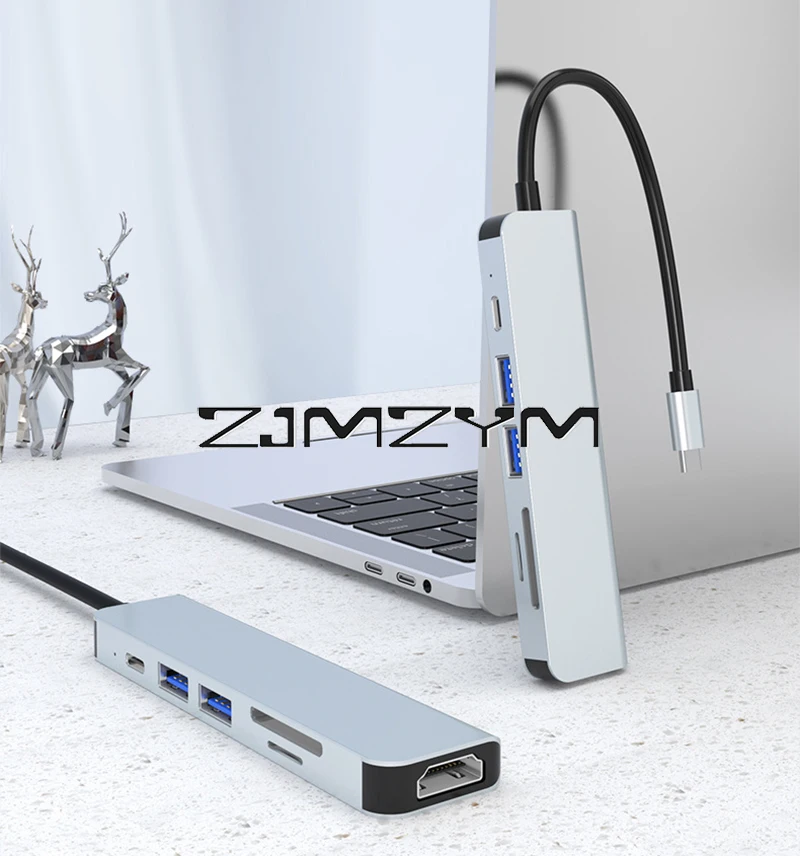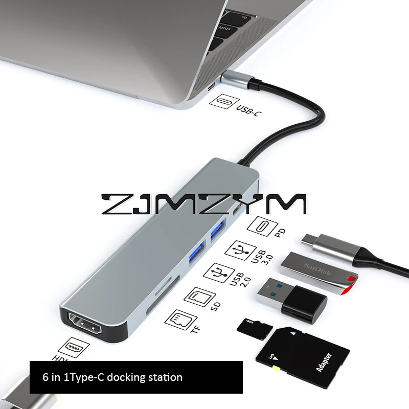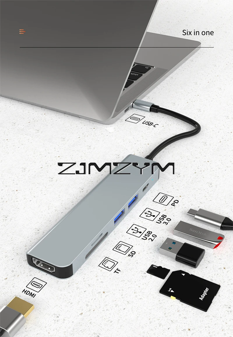USB C 타입 허브 다기능 허브 노트북 도킹 스테이션 6 in