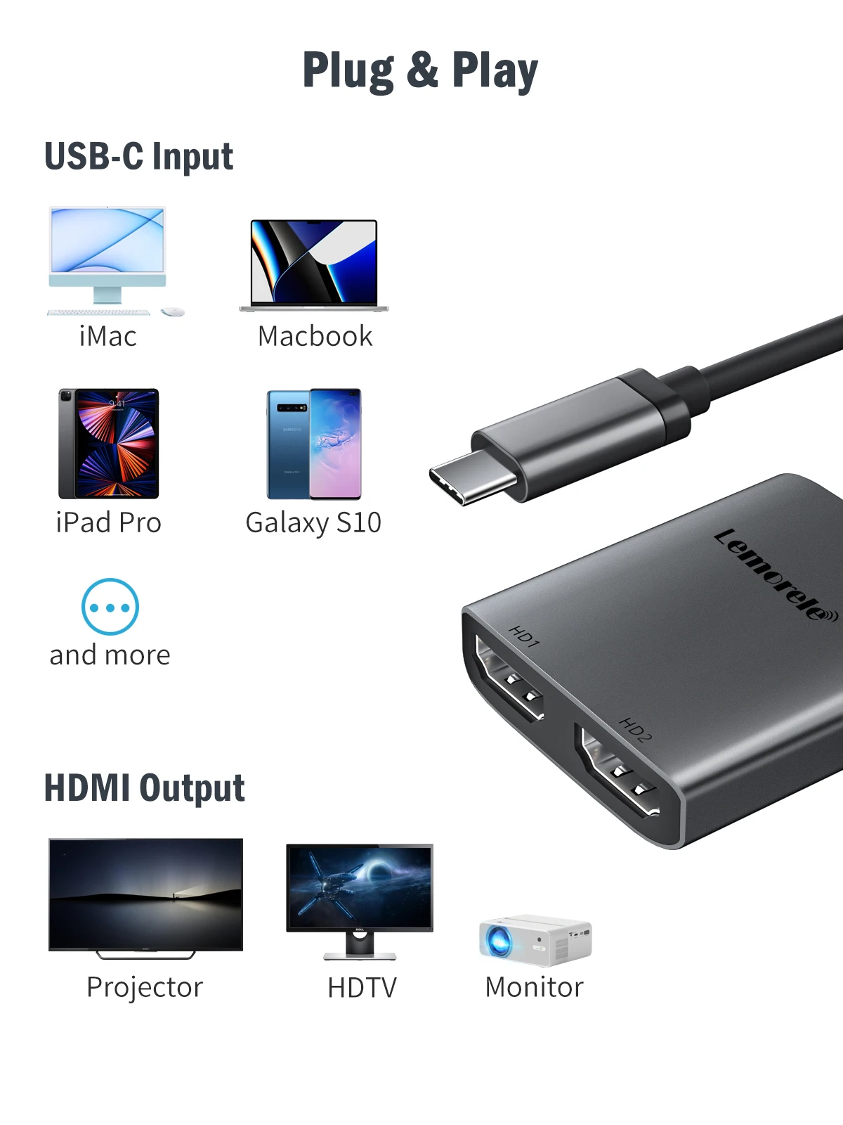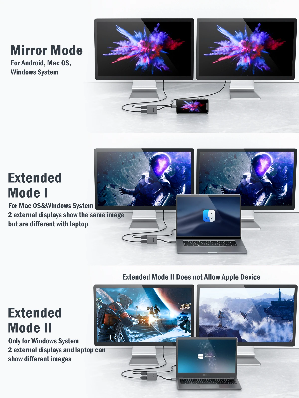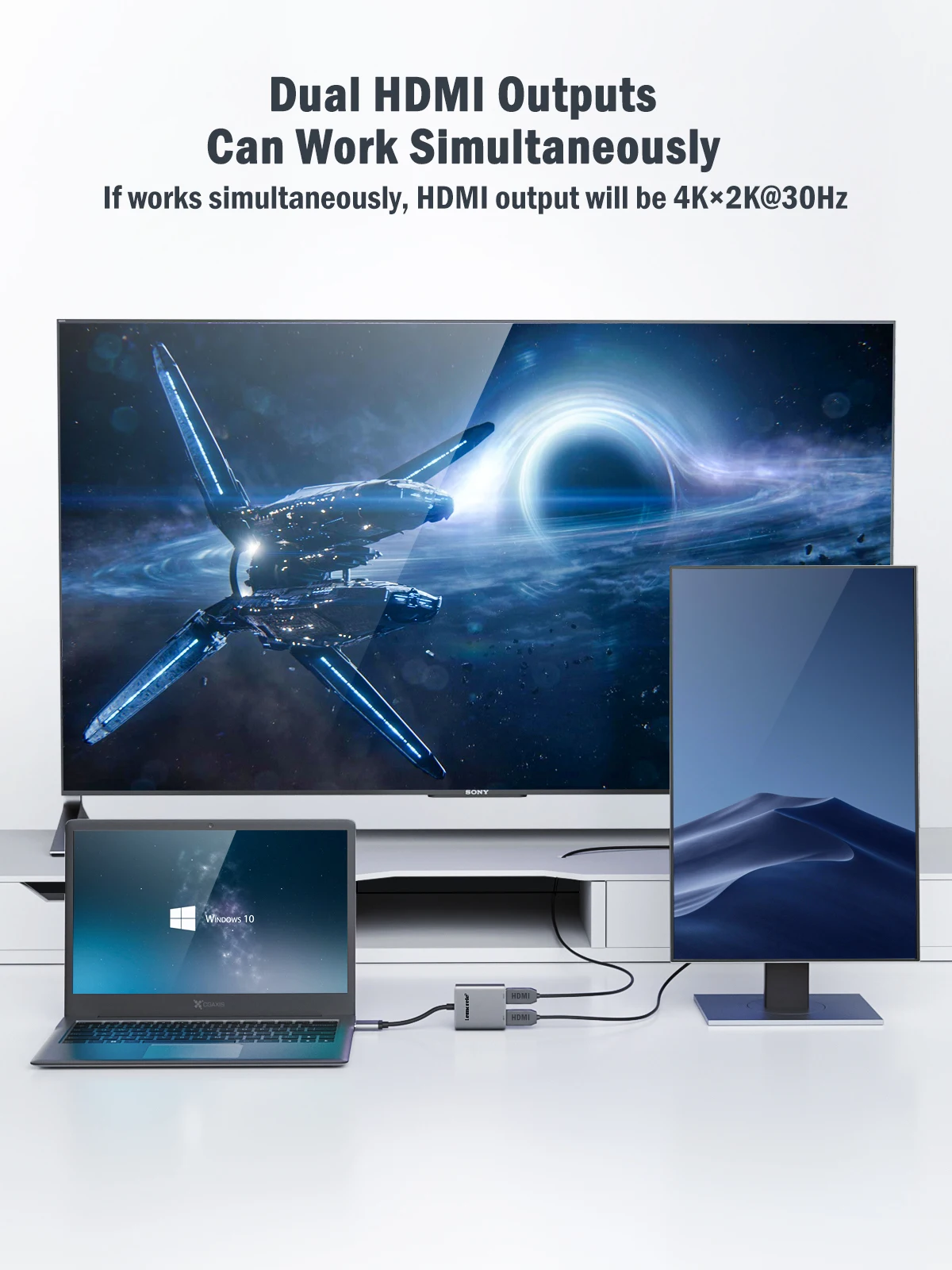 노트북 휴대폰 PC용 USB C 허브 듀얼 HDMI 듀얼 스크린 C타입 도킹 스테이션 2 포트 4K 60HZ