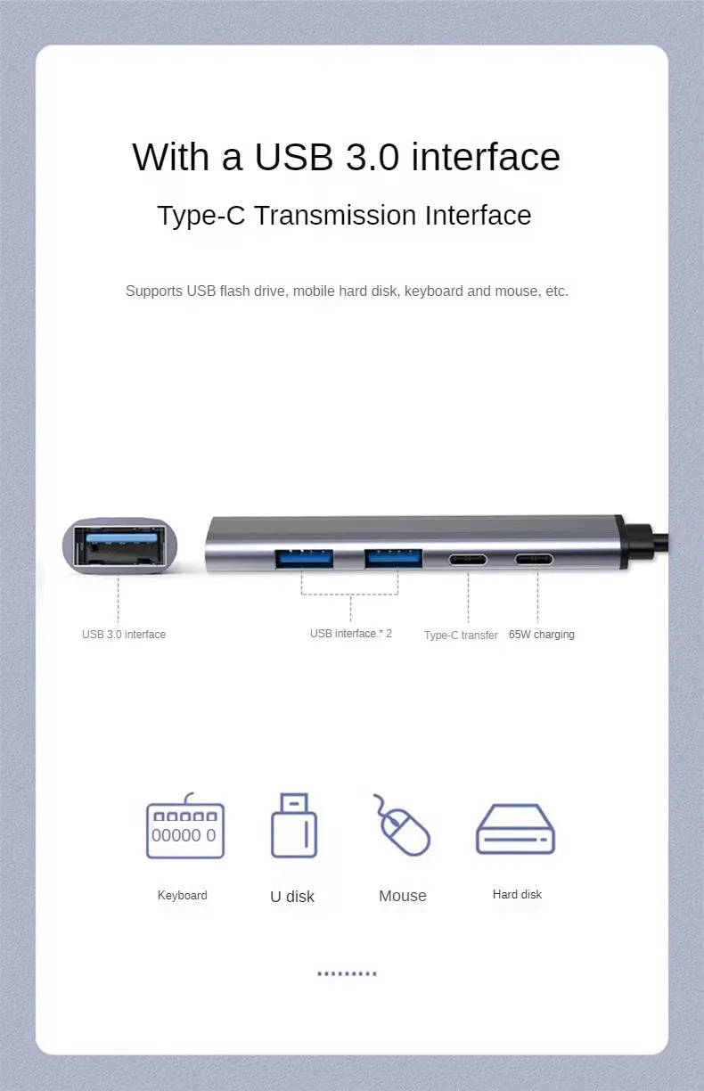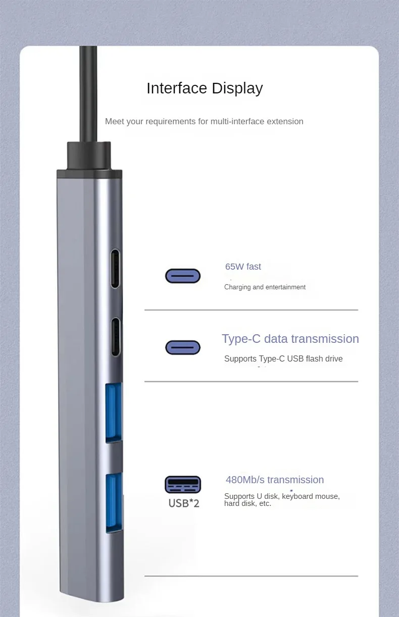 휴대폰 확장기용 멀티 포트 어댑터 USB C 허브 USB 3 0 2 0 PD 분배기 5 in 1/5 in 2 65W