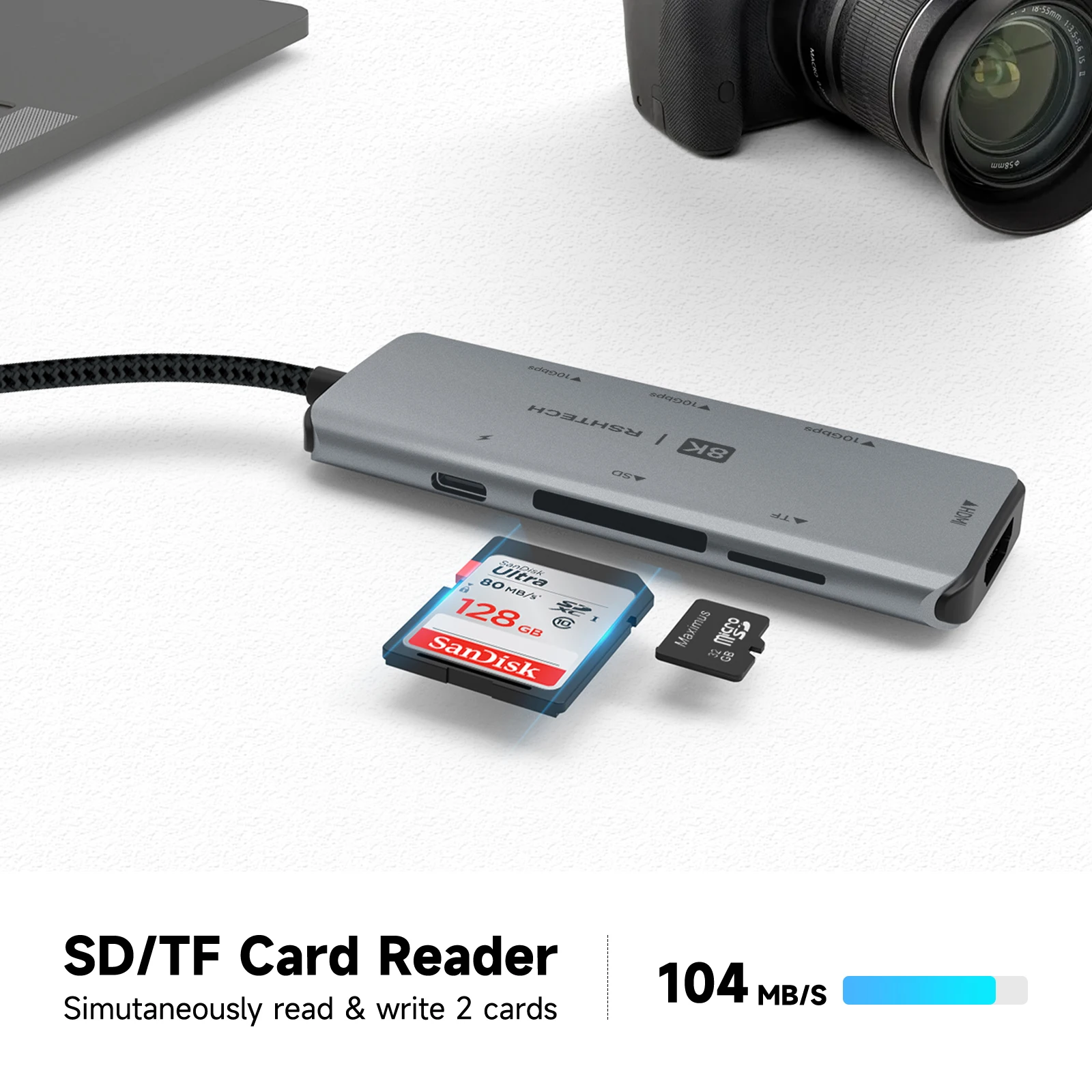 | SD/TF Card Slot | Supports Reading and Writing 2 cards simultaneously. |