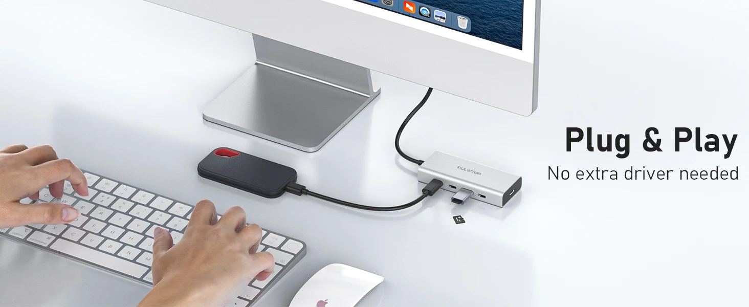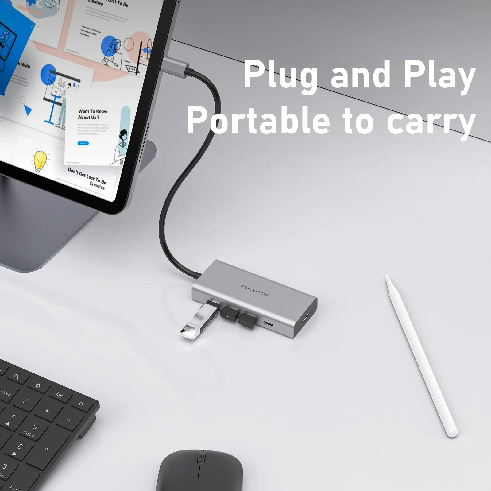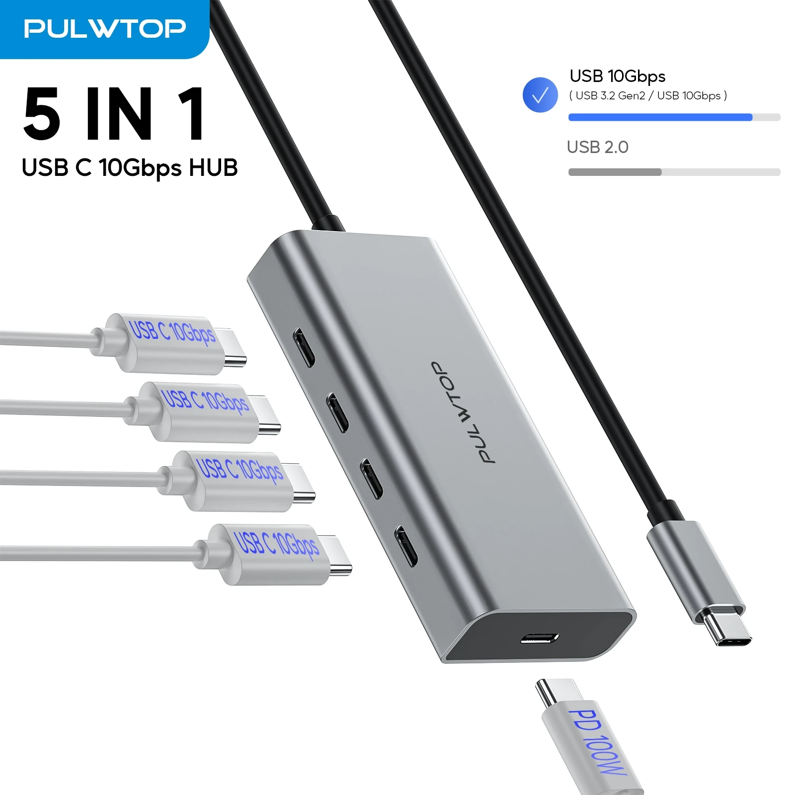 PULWTOP 노트북용 USB C 허브 USB C 멀티포트 어댑터 프로 크롬북 아이맥용 5 포트 10Gbps 100WPD 모니터