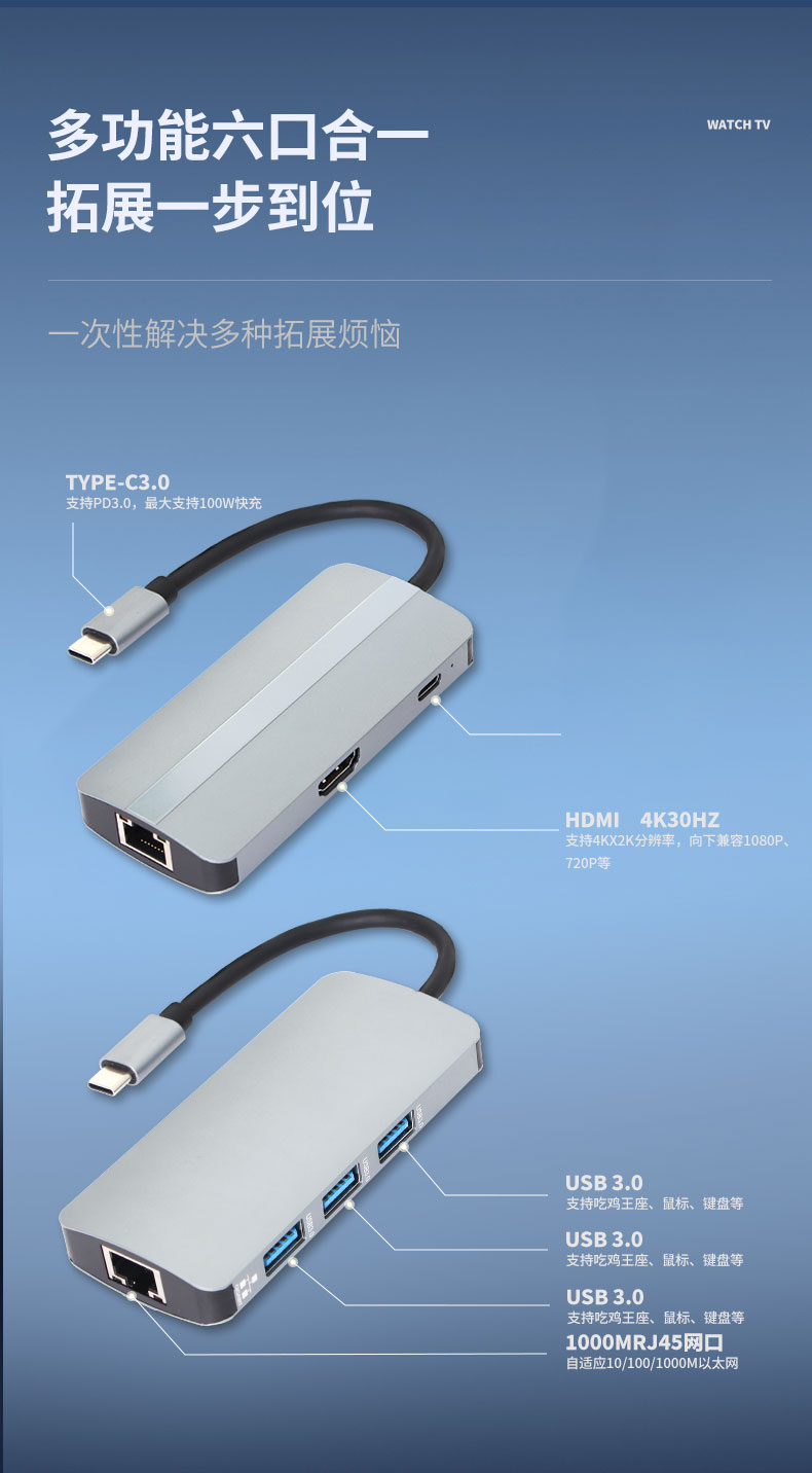 색상 분류 : 6in1 휴대용 도크 HD 기가인터넷 USB3 0 3