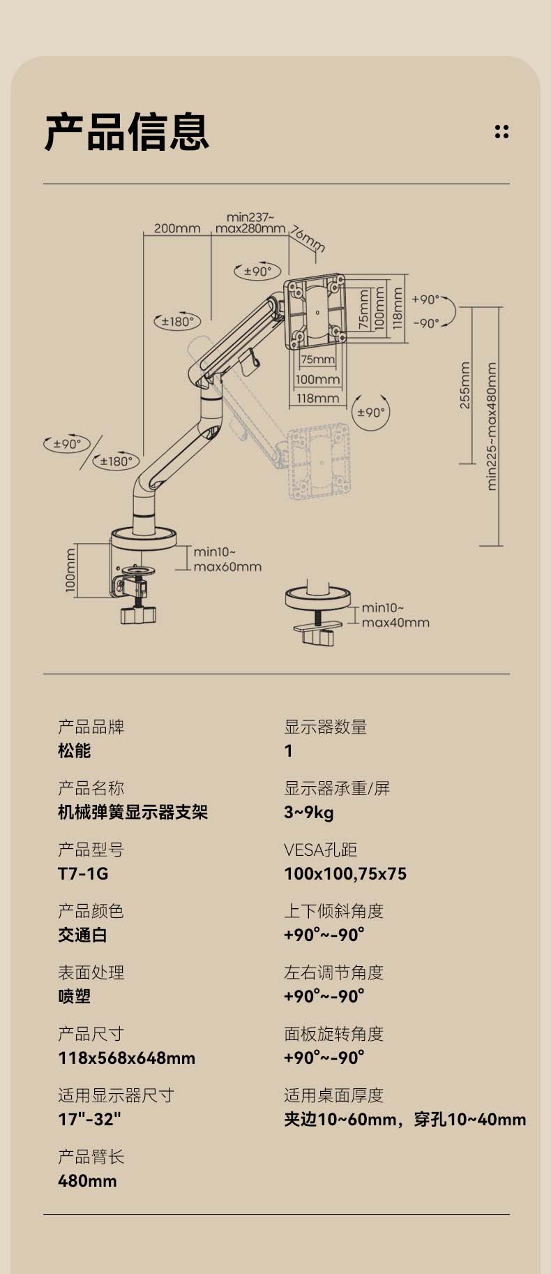 색상 분류 : T7 2G 듀얼 암 타입 17 32인치 하중 3 9kg