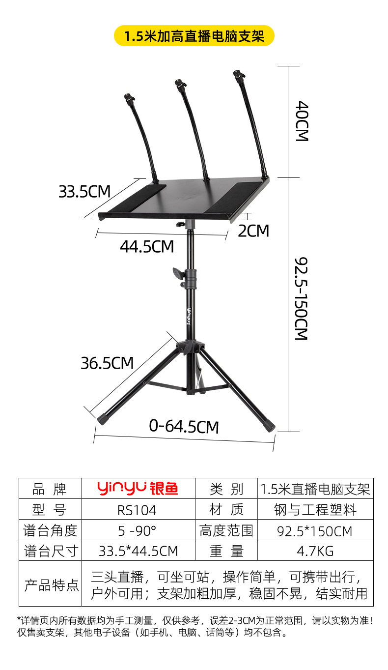 색상 분류 : 7 1.5m 키높이 컴퓨터 거치대+휴대용 가방 ![]() | 색상 분류 : 8 1.5m 키높이 컴퓨터 거치대+트레이+가방 ![]() | 색상 분류 : 9 1.5미터 생방송 거치대+트레이+핸드폰 집게 마이크 홀더 ![]() |
