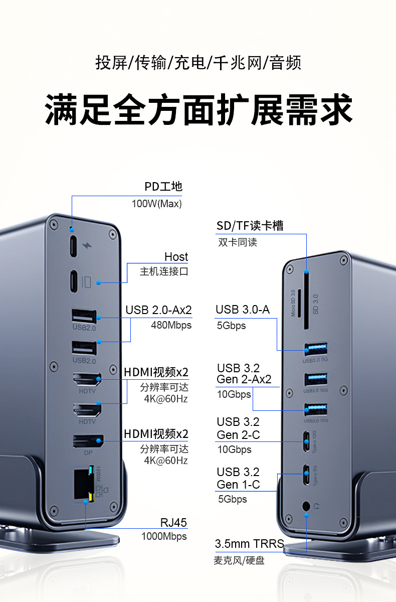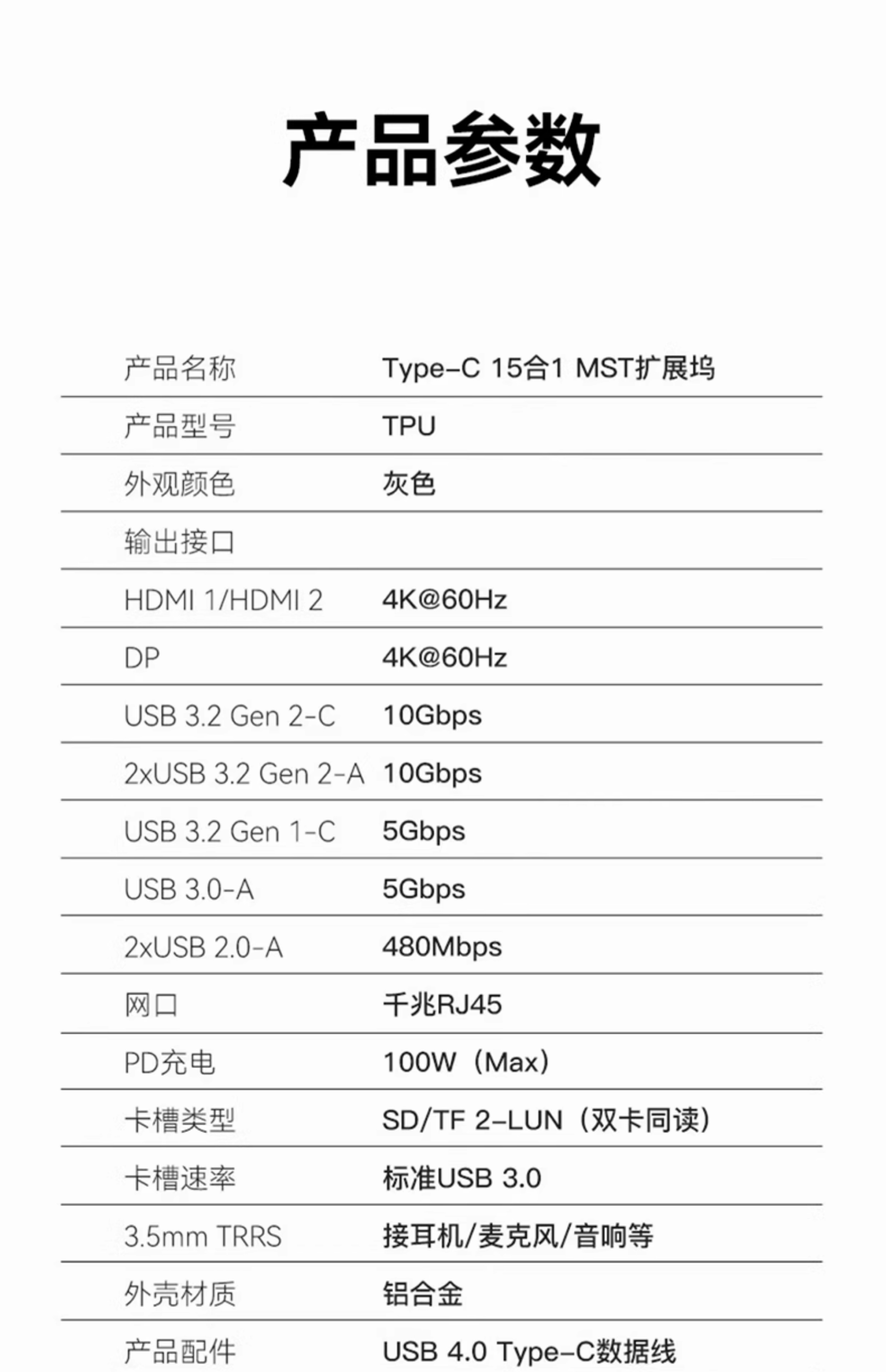 색상 분류 : 2 15 in 1 도킹 듀얼 HD DP TypeC10Gbps USB3 2 PD100W 기가비트 쿼드스크린 디스플레이