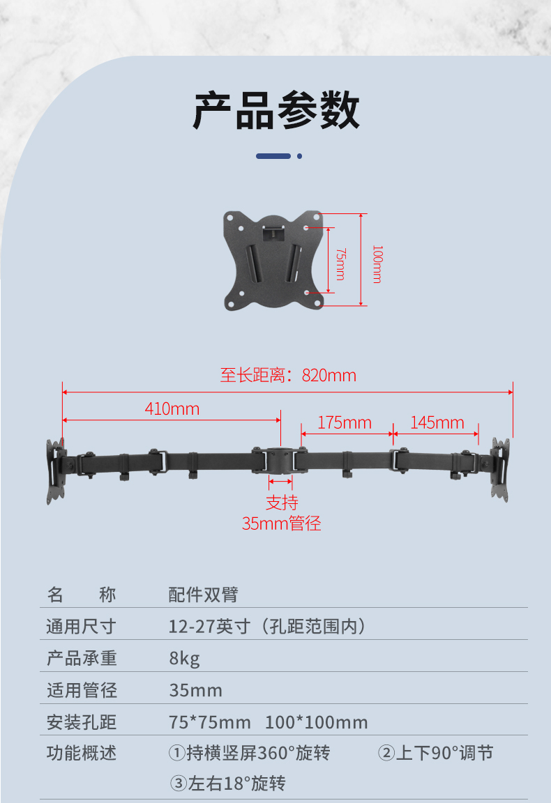 색상 분류 : 연장 양팔 모니터 스탠드
