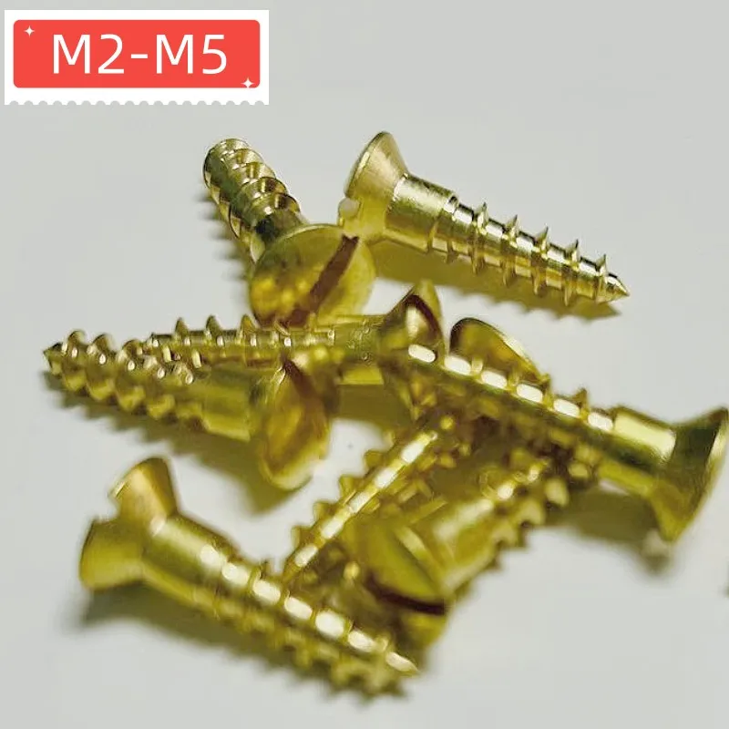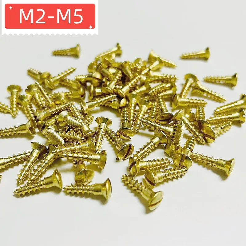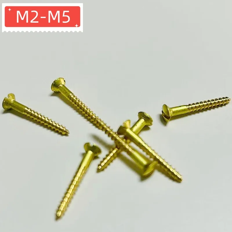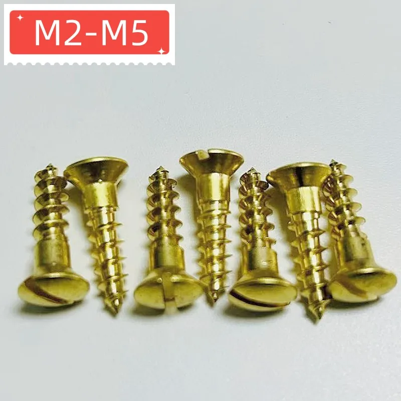 100PCS M2M2 5M 5M4M4 5M5 순수 솔리드 브래스 구리 DIN95 하프 카운터 싱크 슬롯 둥근 머리 셀프 태핑