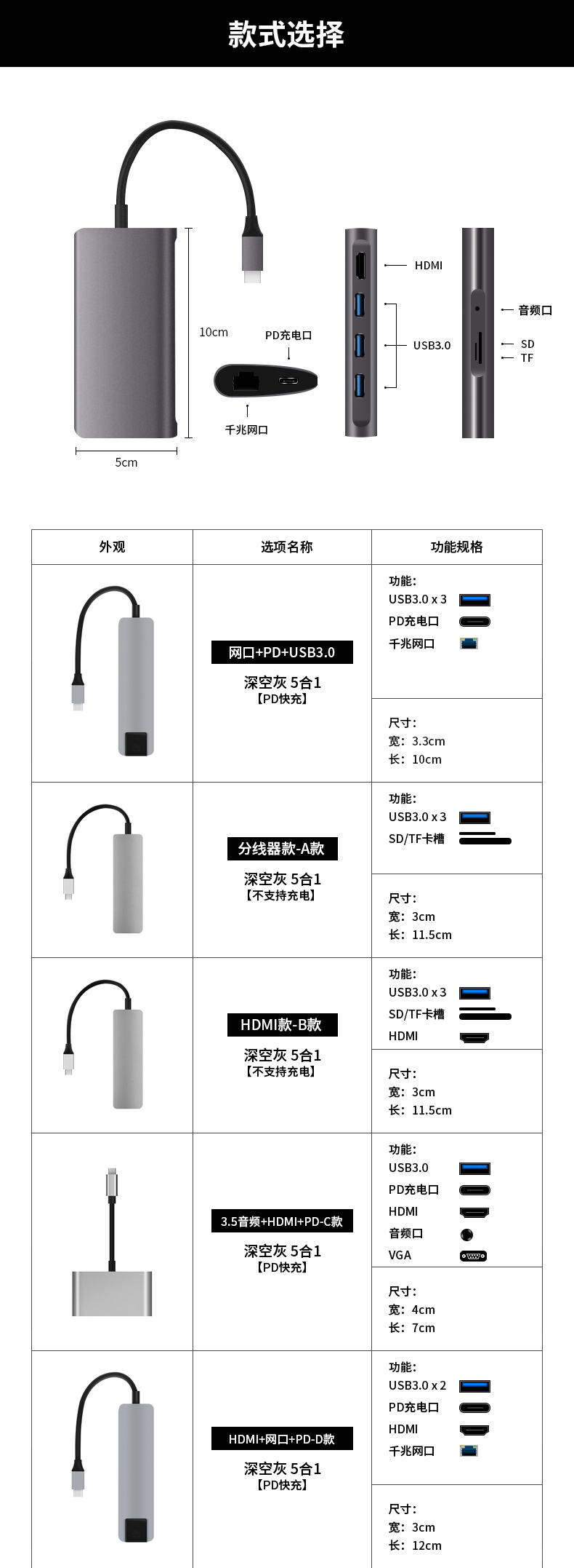 노트북 분배기 USB 허브 모든 컴퓨터 확장 스테이션 노트북케이블 3