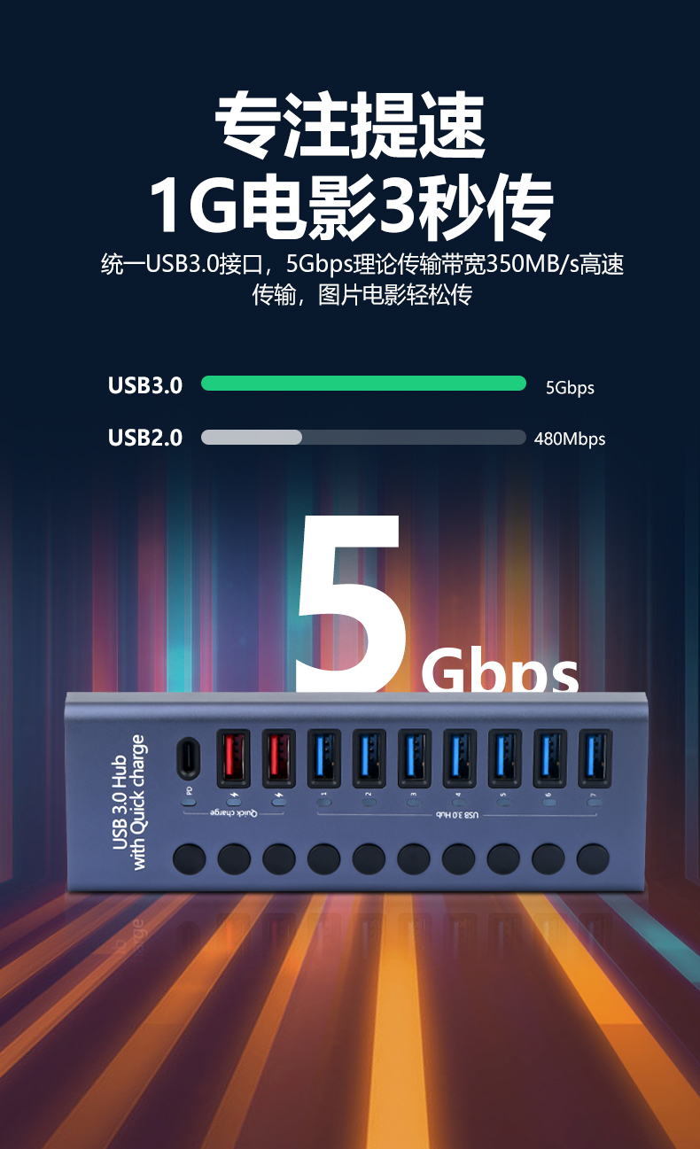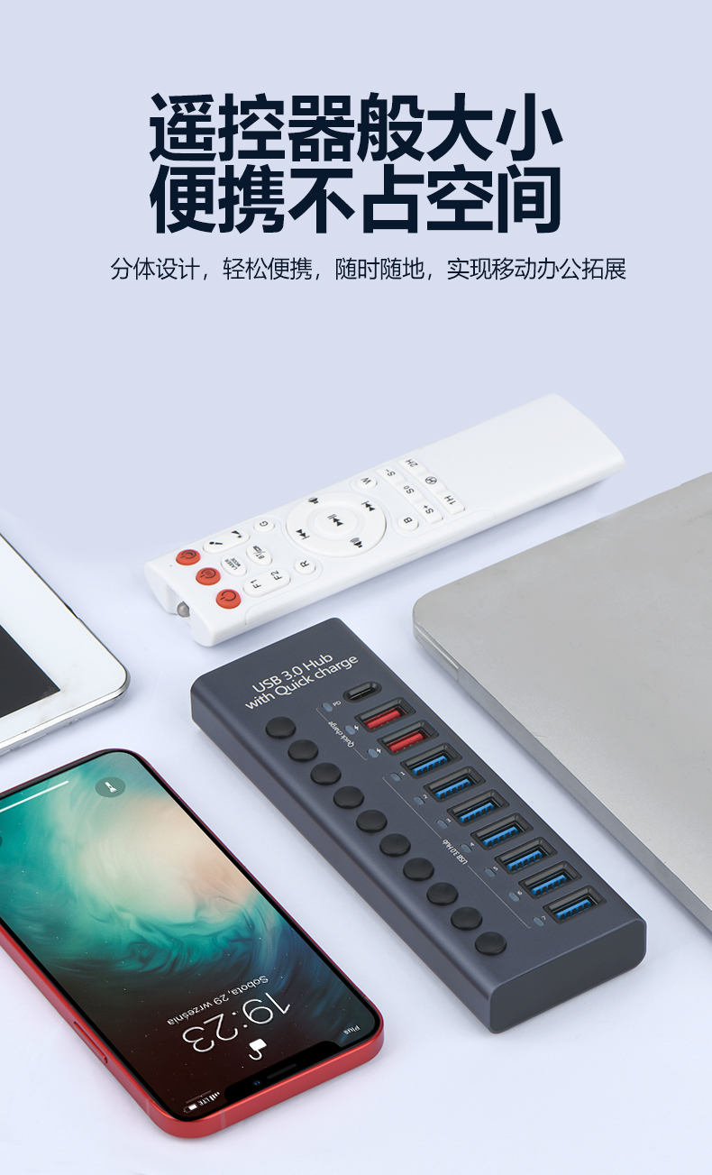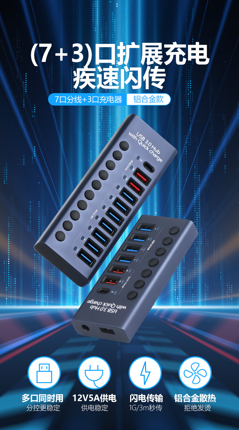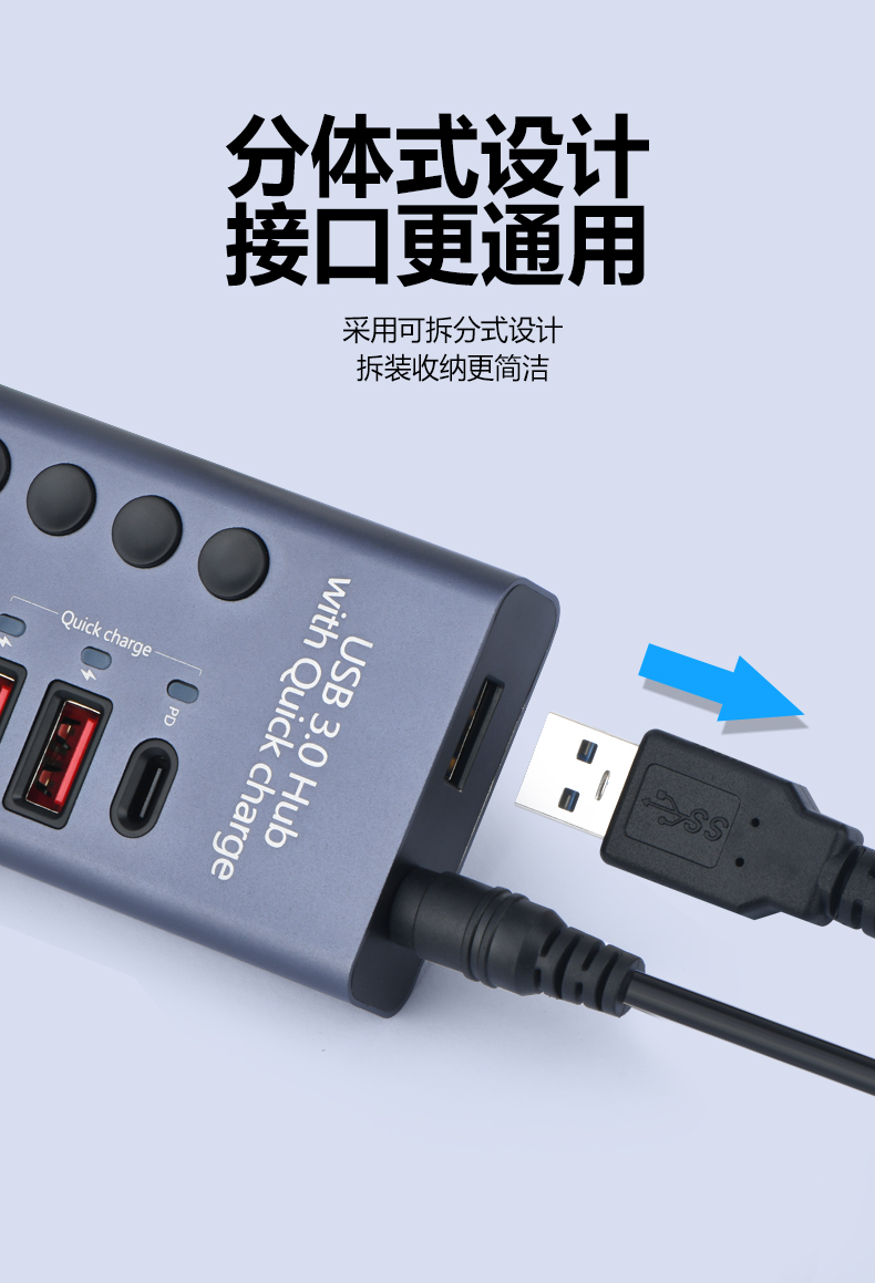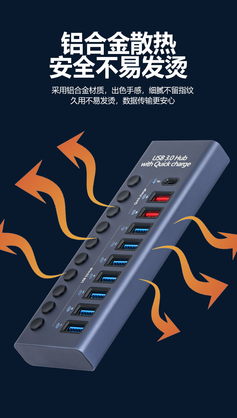 USB3.0허브 6포트 개별스위치 금속본체 PD 젠더 웬터 .USB 장착 스위치가