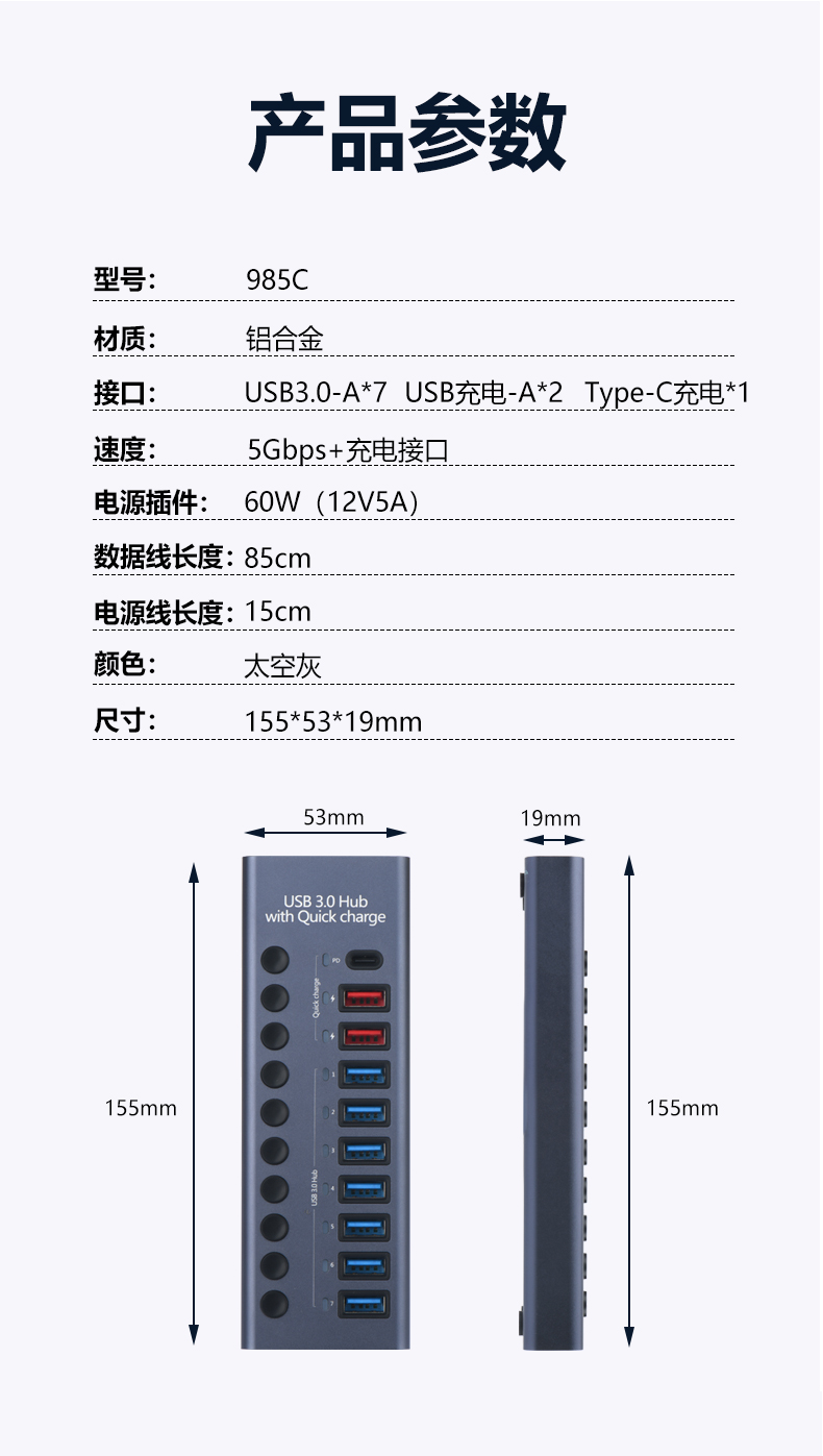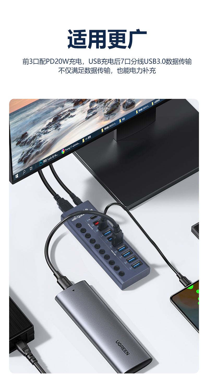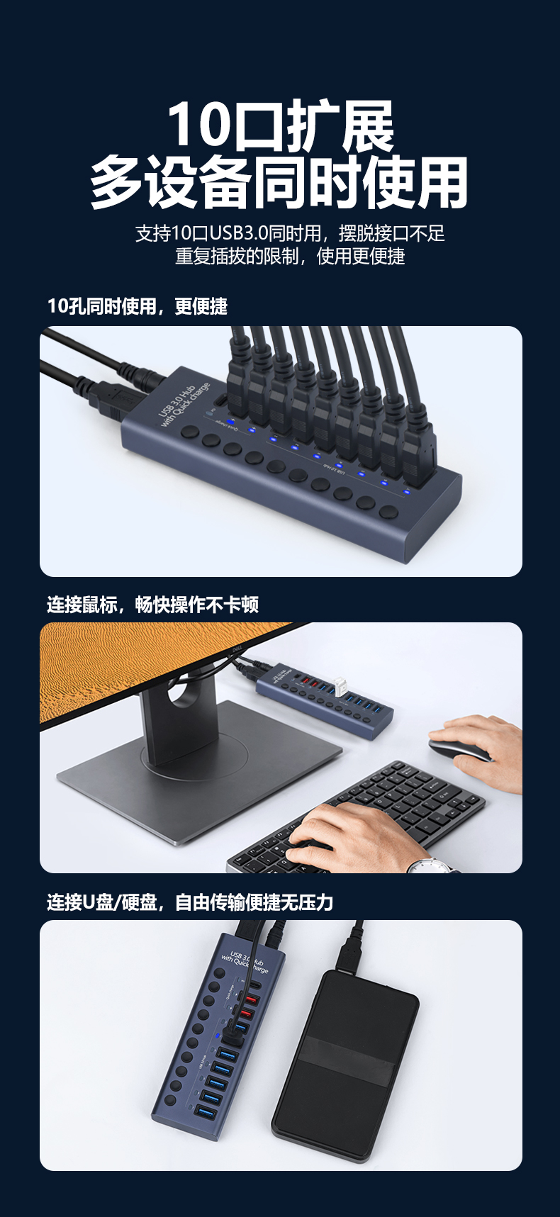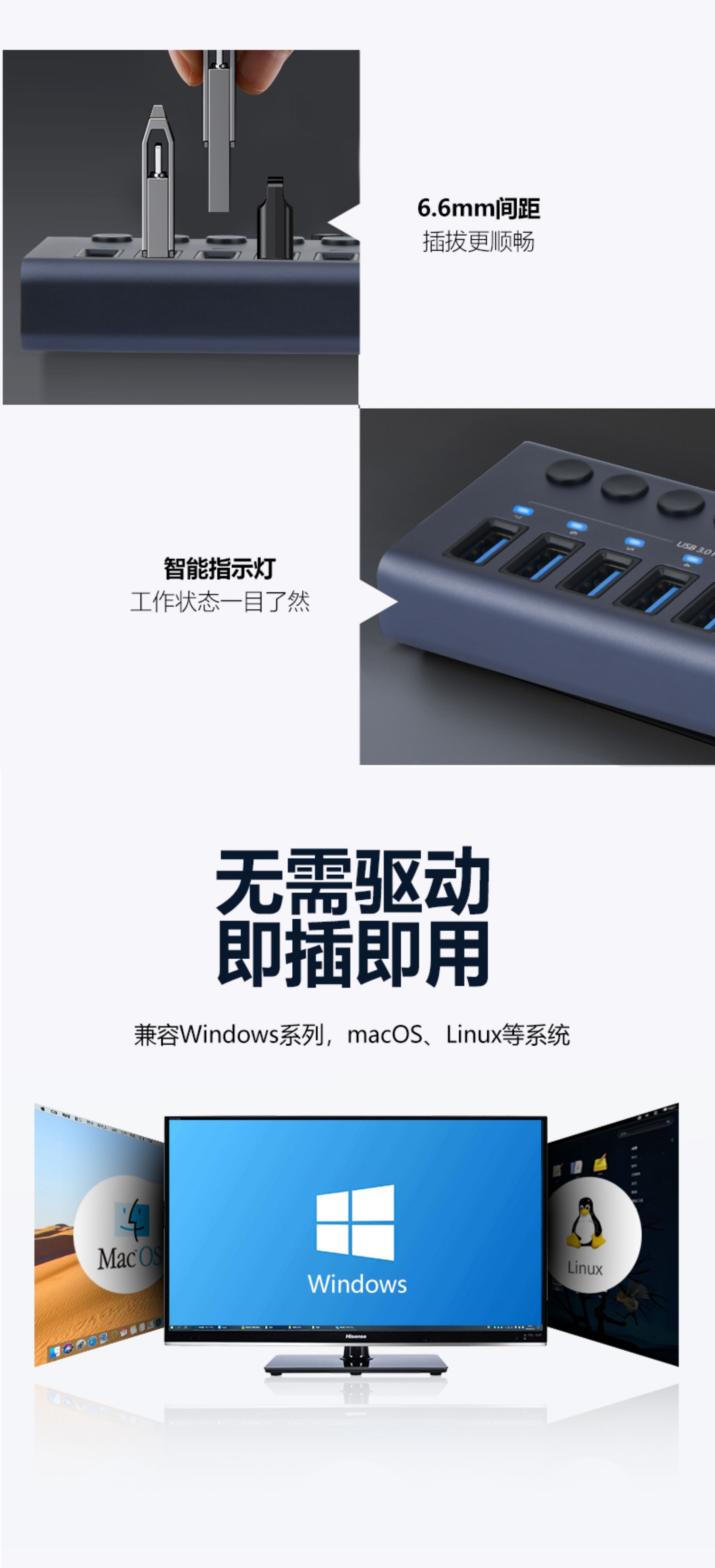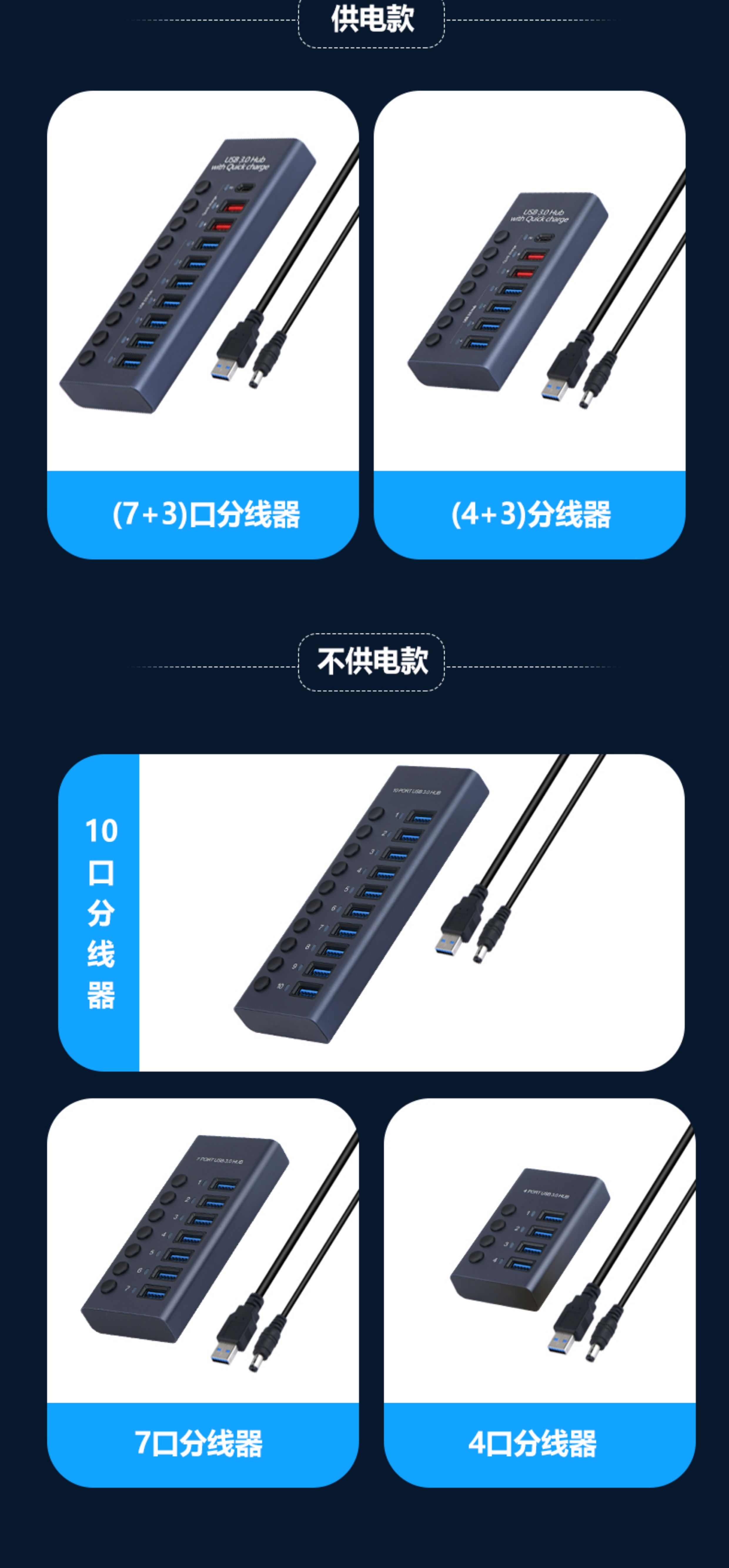 USB3.0허브 6포트 개별스위치 금속본체 PD 젠더 웬터 .USB 장착 스위치가