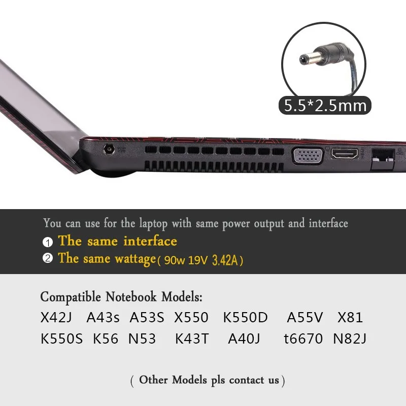 | Output | AC 19V 3.42A |