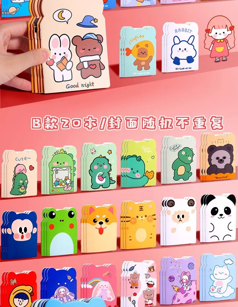 20pcs 만화 귀여운 참고 미니 어린이 소책자 책 휴대용 노트북 주머니 작은 일기 상금