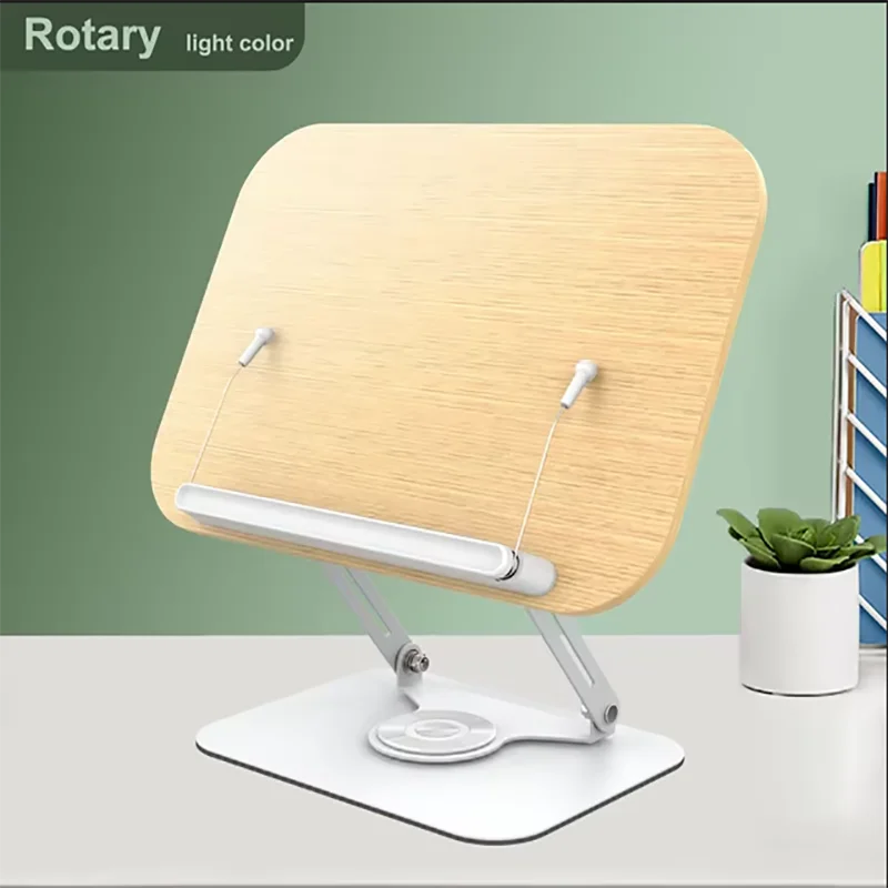 독서 책 홀더 페이지 360 데스크탑 회전 노트북 베이스 각도 교과서용 목재 및 클립 스탠드 패널 접이식