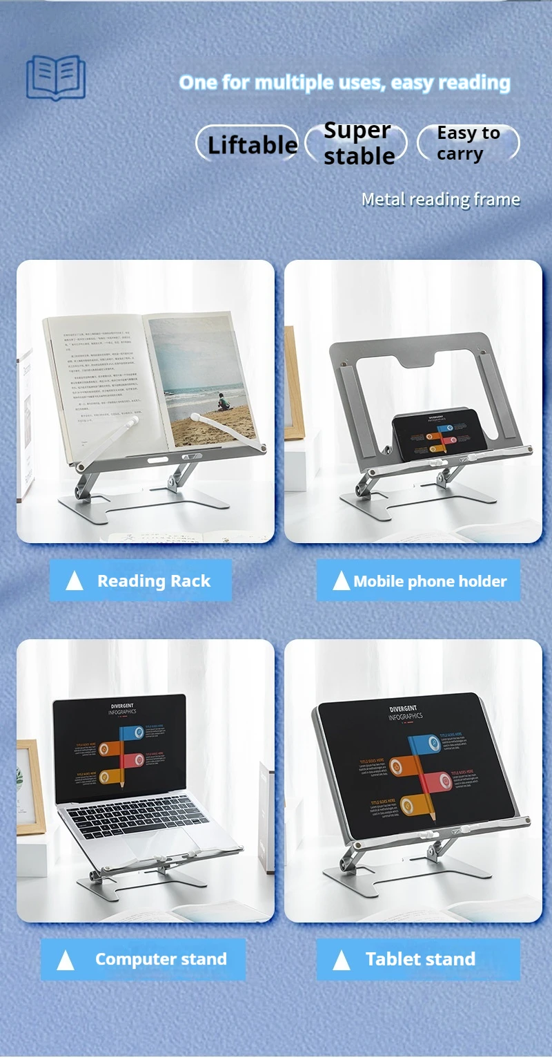 확장 가능하고 조절 읽기에 다기능 노트북 사무실 학습 전화 탄소강 적합 스탠드 가능한 도구 휴대 독서