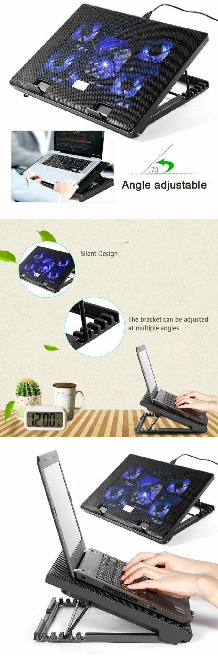 Kootek 노트북 쿨링 패드 조용한 마운트 조정가능한 블루 2 0 칠 2개 5 스탠드 각도 높이 12인치 17인치