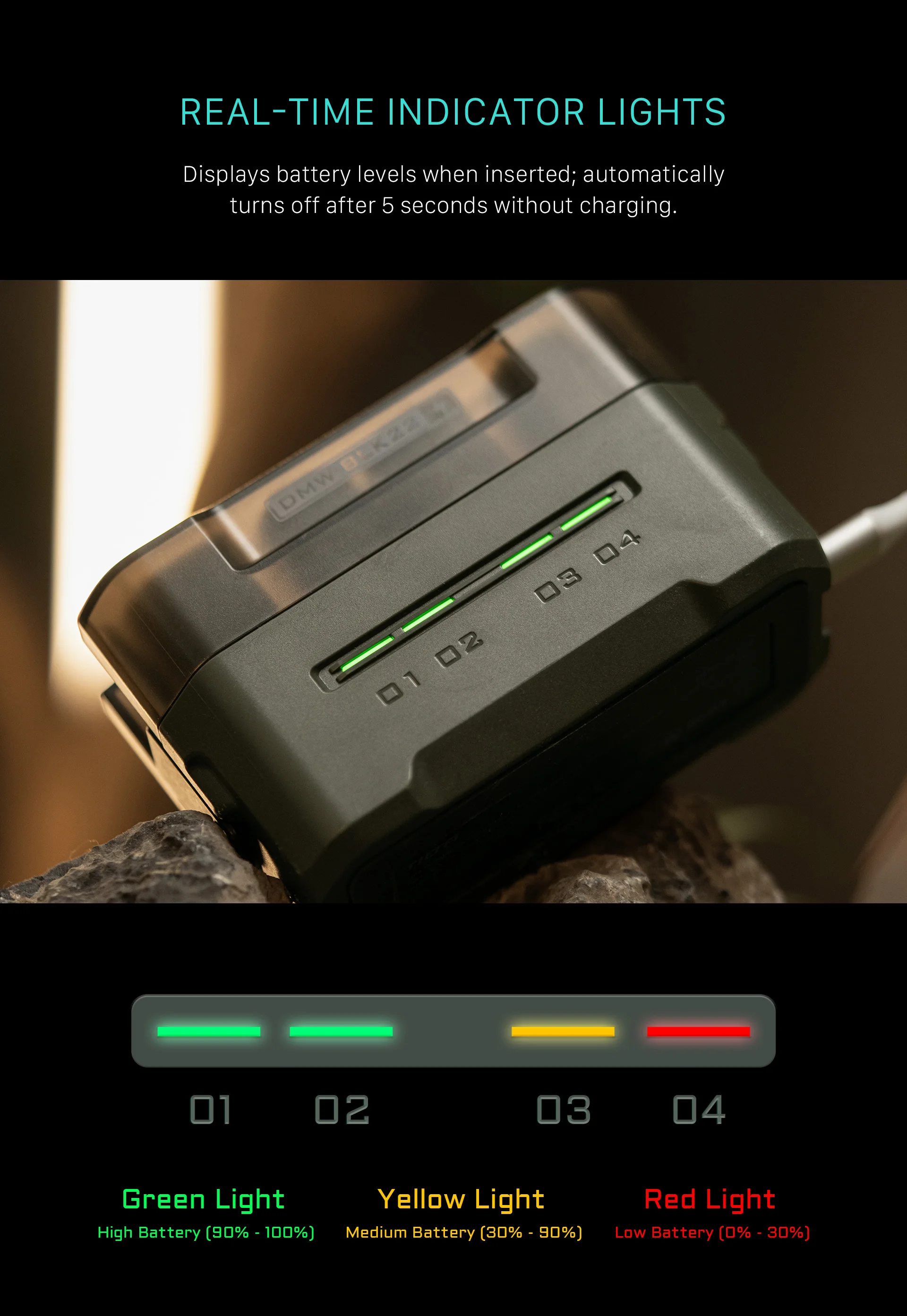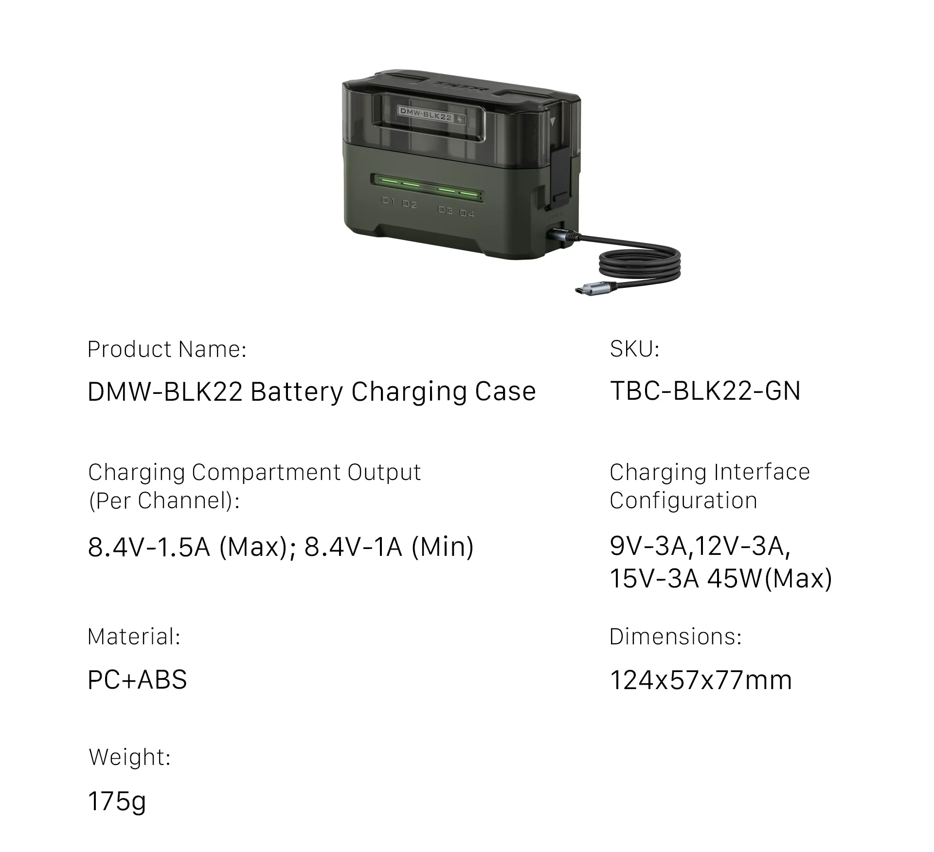이 소형 충전 스테이션은 및 타사 DMW BL 2 배터리를 지원하도록 설계되었으며 간편한 충전과 편리한 보관을 위한 4 슬롯을 제공