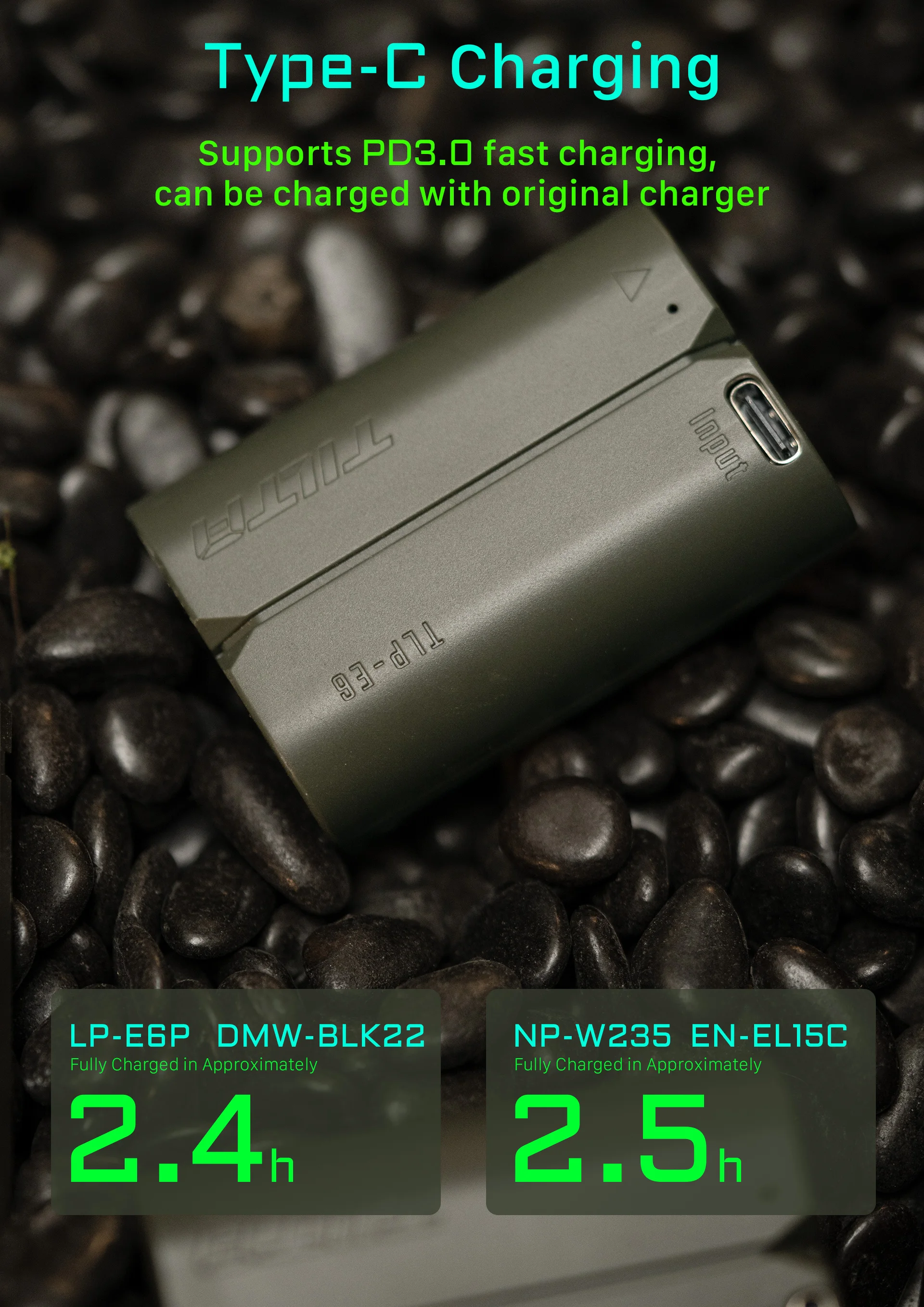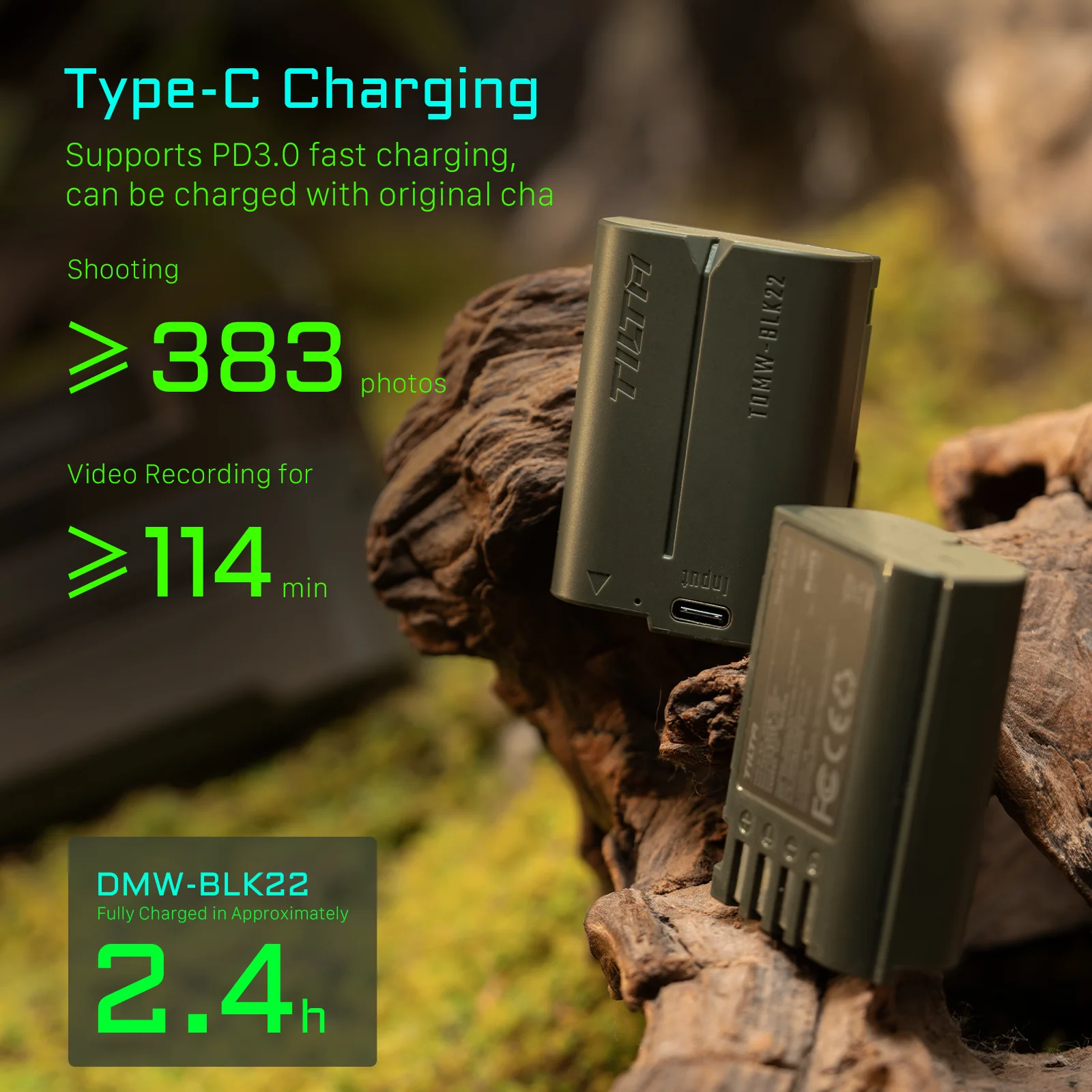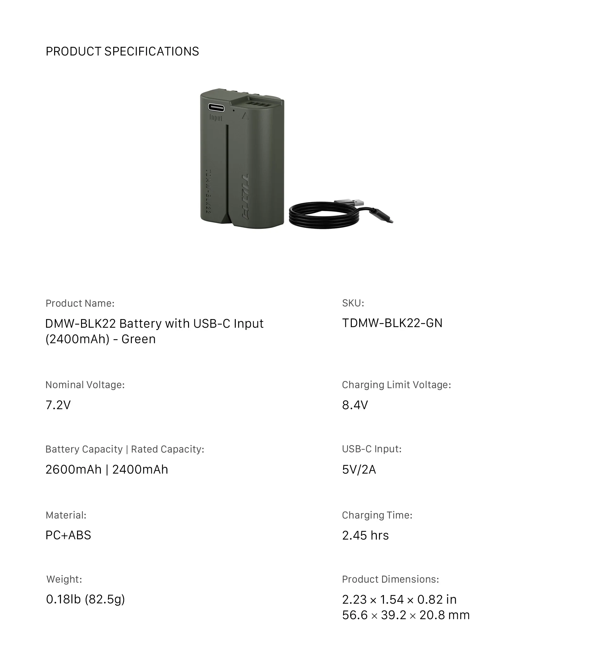 1 USB C 입력이 있는 Tilta DMW BL 2 배터리(2400mAh) ? 녹색 1