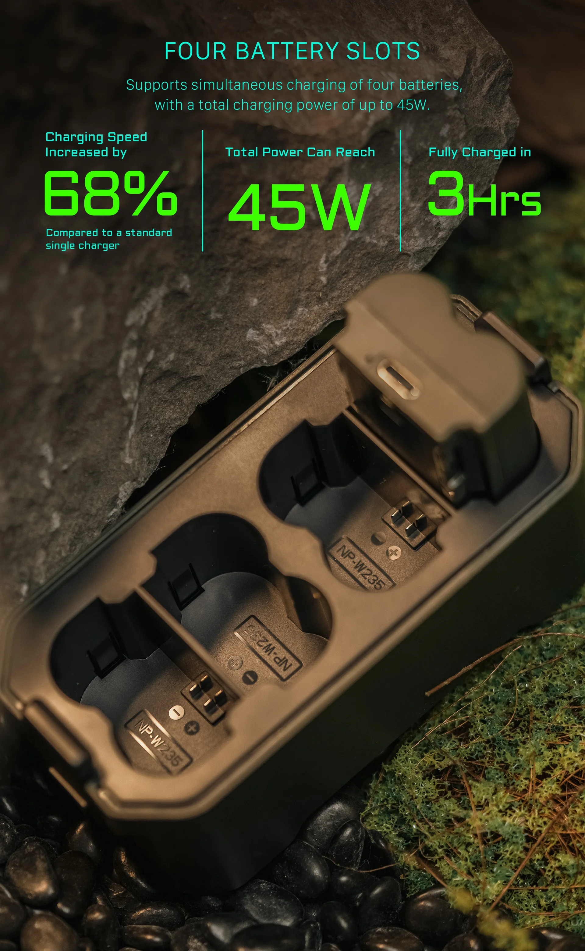 4 슬롯을 통해 사용자는 4 배터리를 동시에 충전