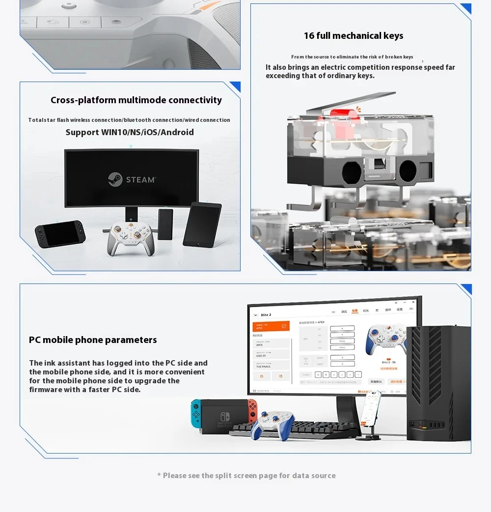 BIGBIG WON BLITZ 2 무선 컨트롤러 16개 완전 기계식 스위치 2000Hz 보고 속도 TMR 전자기 PC/Switch/ /Android용 PC 컨트롤러