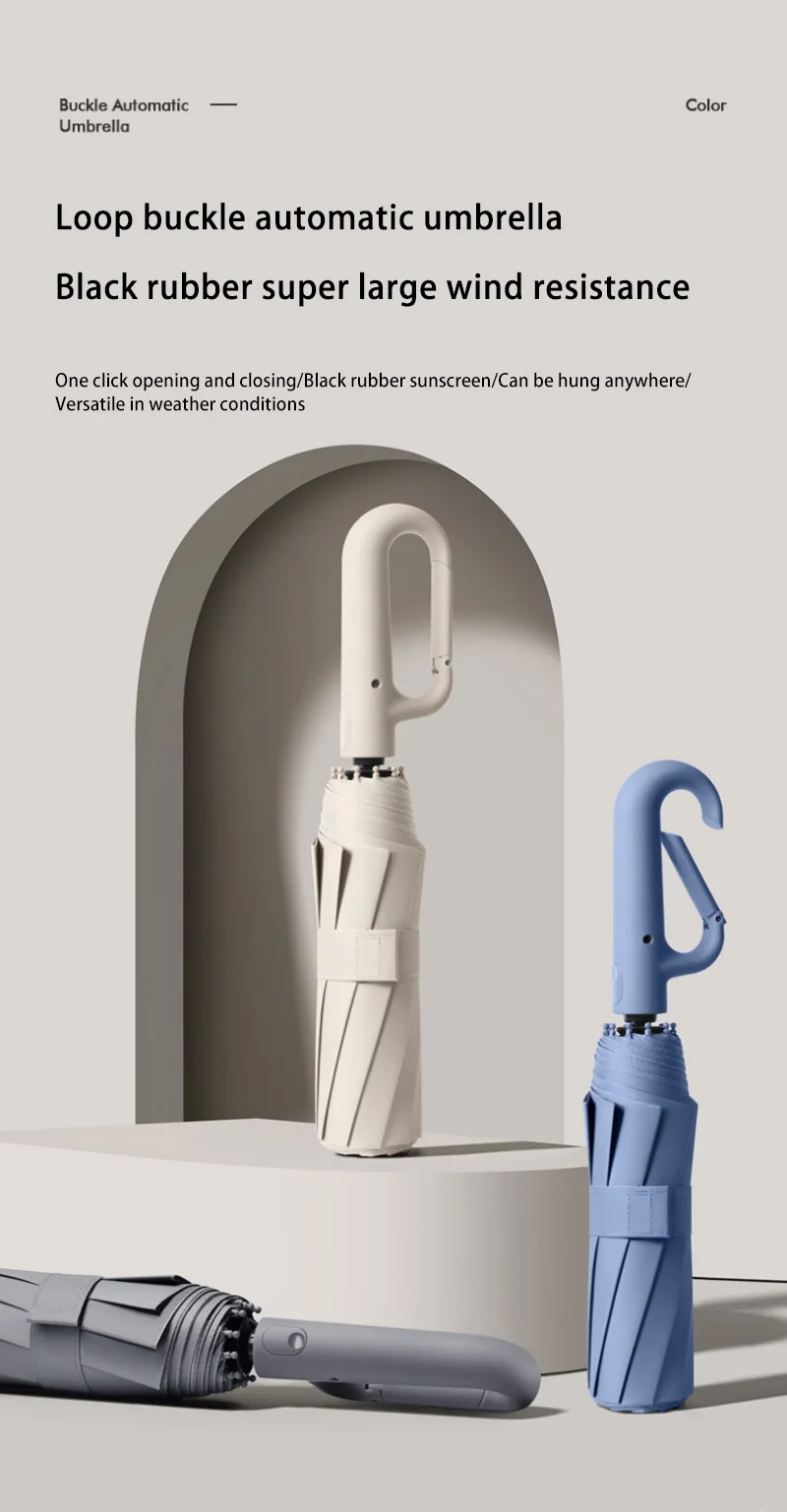3 자동 개폐 손잡이 꼬리 부분에 독특하고 버클 디자인이 있으며 한 번의 누르기와 한 번의 접기로 배낭 벨트 등에 쉽게 걸 수 있어 휴대가 편리