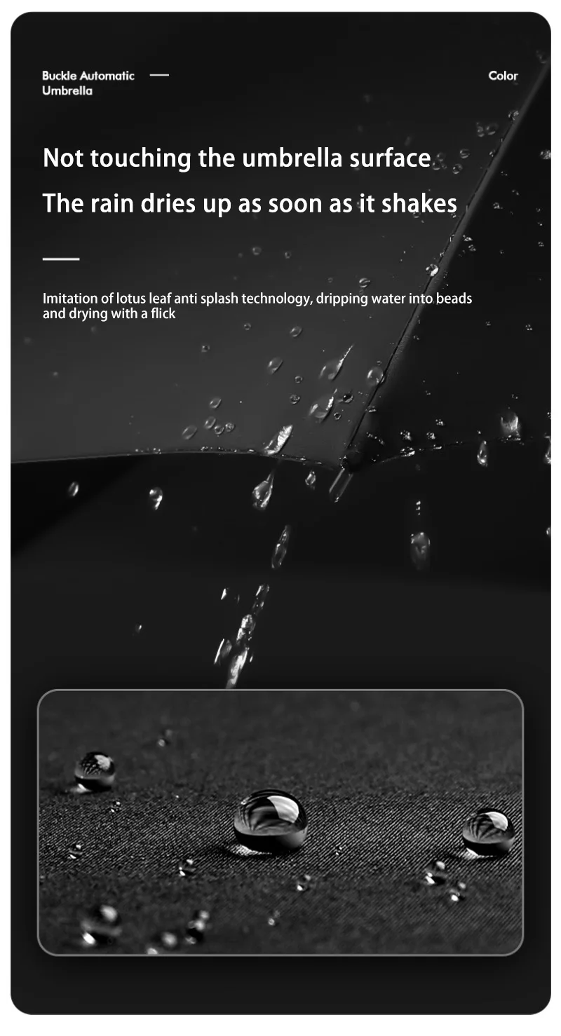 2 건조하게 유지 비오는 날 사용 후에는 즉시 우산을 펴서 말려주세요 산성비는 우산 표면 소재의 노화를 가속화하여 방수 또는 차광 효과에 영향을 미칩니다