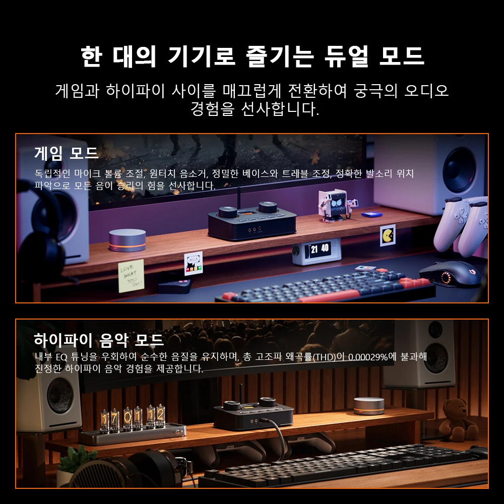 [ 강력한 폰 증폭 ]다양한 구동 범위 제공 폰 최대 300Ω 전달하다명확하고 강력하며 왜곡이 없는몰입감 넘치는 음악 및 게임 경험을 위한 오디오